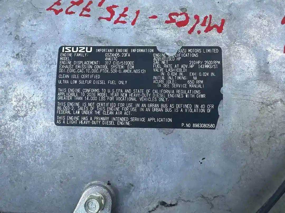 Good used 2016 Isuzu Nrr, 4HK1-TC engine assembly. This engine fits 2016 2017 Isuzu Npr Npr-hd Nqr Nrr and GMC/ Chevrolet W3500 W4500 W5500...