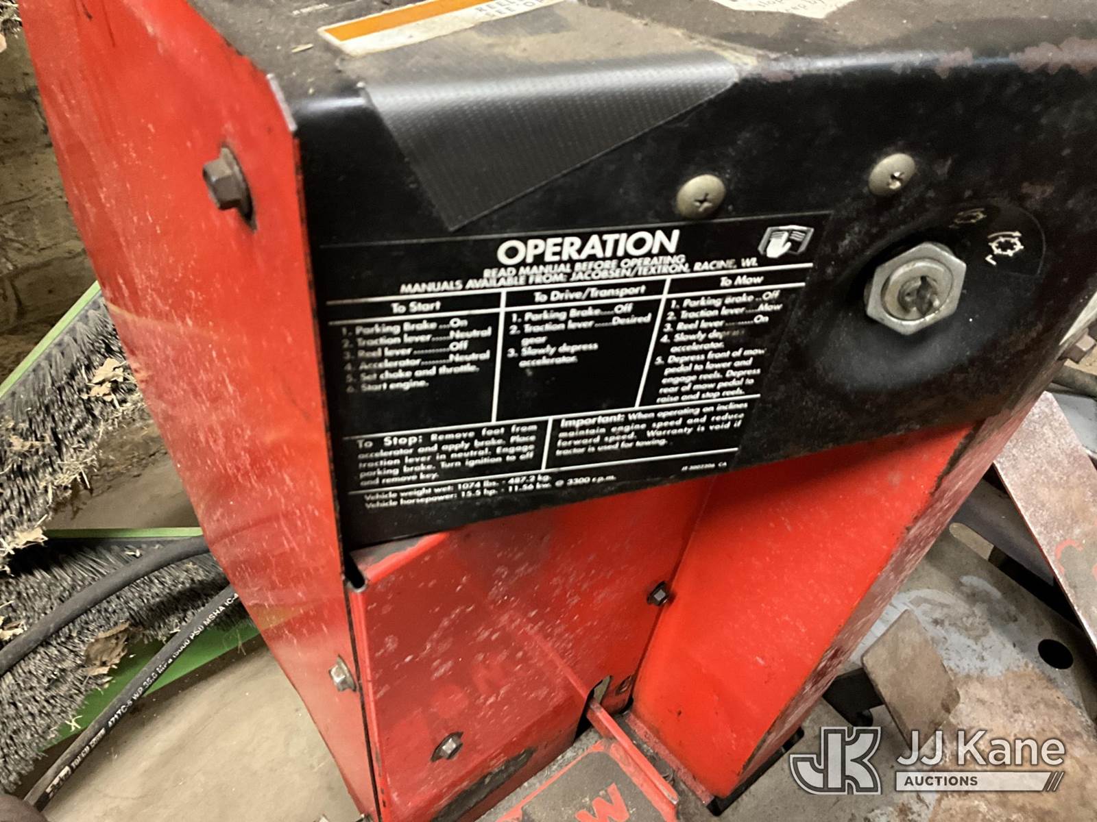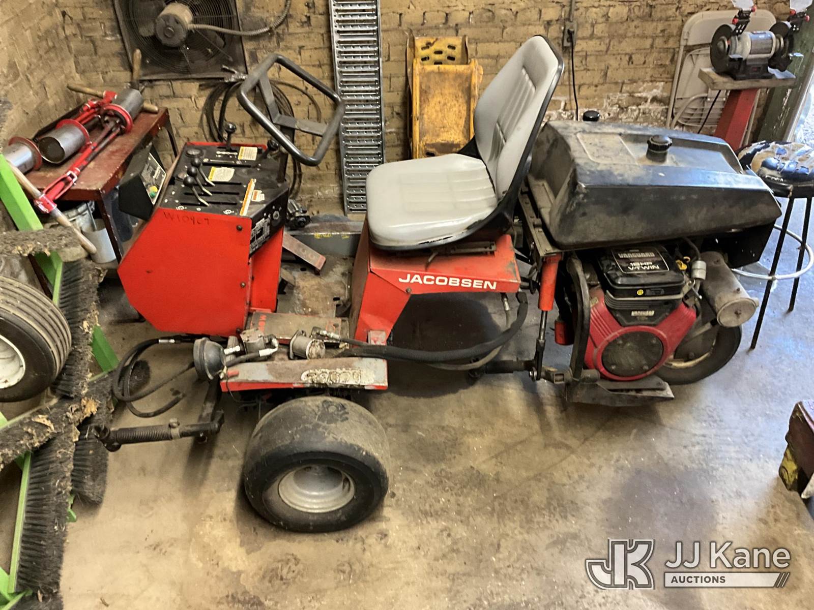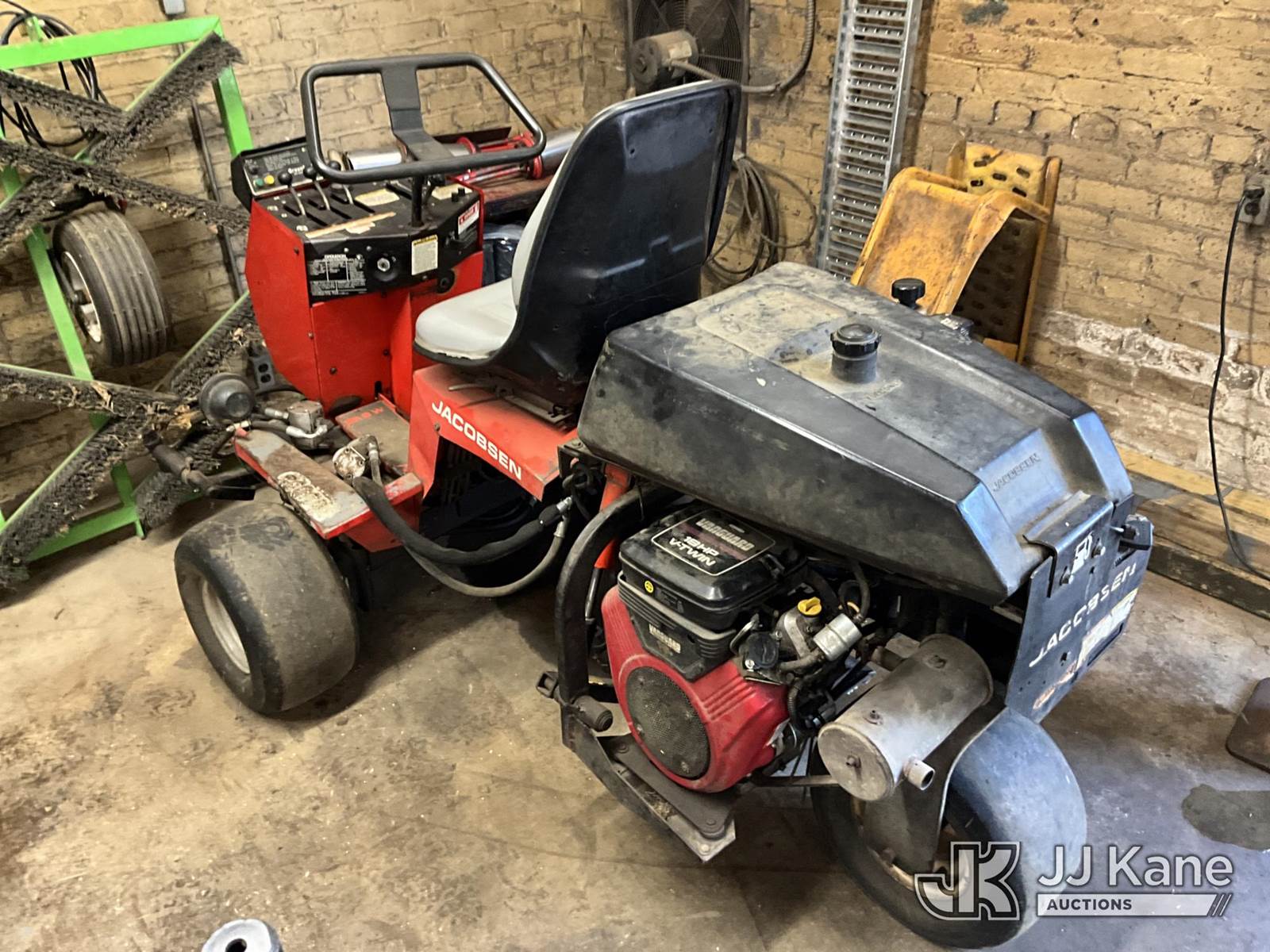 Jacobsen Greens Mower, s/n 62257 3322, Vanguard gas, (Not Running, Condition Unknown, Cranks, Hyd. Leaks) (Buyer Must Load) (Reads 6,568 hours) NOTE: This unit is being sold AS IS/WHERE IS via Timed Auction and is located in Louisville, KY. For more information & removal arrangements please contact Spencer Owen @ 502-232-2541. Load Out will be by appointment only M-F; must call 24 HRS. in advance. Buyer/Hauler must present copy of paid invoice upon arrival. Purchaser acknowledges ALL lots must be removed within 5 business days of Auction, or a storage fee may be incurred. This item is used and may contain defects that are not immediately detectable. Text description and photos given are meant to be used as a guide only. The conditions are provided by the consignor; you are responsible for inspecting item before bidding. All information provided is believed to be correct but no warranty as such is either intended or implied. All items are sold AS IS - WHERE IS AND WITH ALL FAULTS AND DEFECTS THEREIN. Auctioneer Michael Whitebread / License # 256617 (Buyer is responsible for removal. Assistance by consignor or JJ Kane Auctions is not assured.)