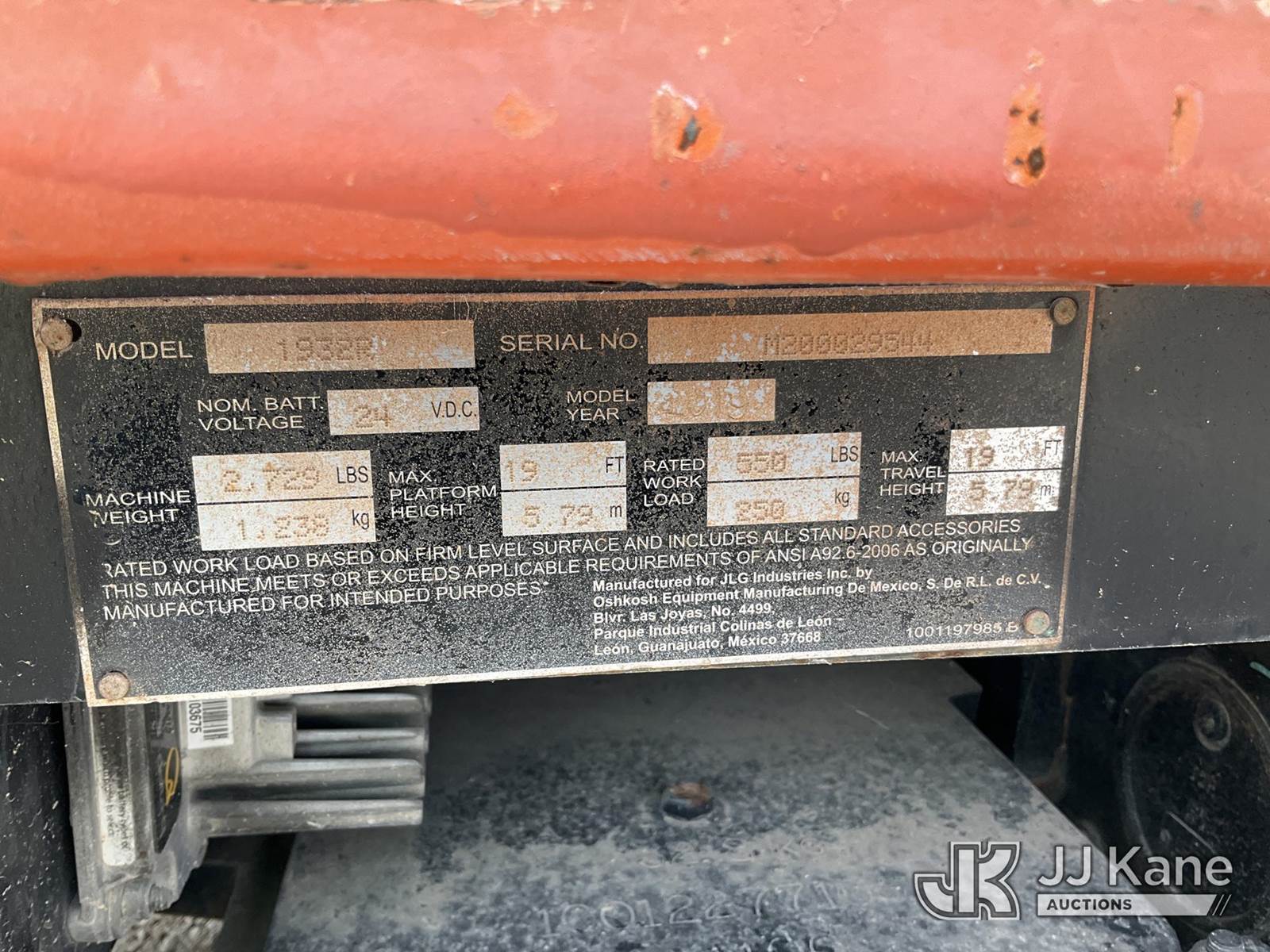 JLG 1932R Self-Propelled Scissor Lift, s/n M200029544, battery powered, Hydrostatic, with 19ft, (Runs, Moves & Operates) (Reads 95 hours) NOTE: This unit is being sold AS IS/WHERE IS via Timed Auction and is located in Waxahachie, TX. Inspection & preview days for this unit are the 2 business days prior to the first day of items closing for this auction, item is located at 999 Solon Rd Waxahachie, TX 75165 and hours of operations are 8a-4p. For pre-sale questions, please contact Alex Bayless @ (469) 550-4938. (Buyer is responsible for removal. Assistance by consignor or JJ Kane Auctions is not assured.)