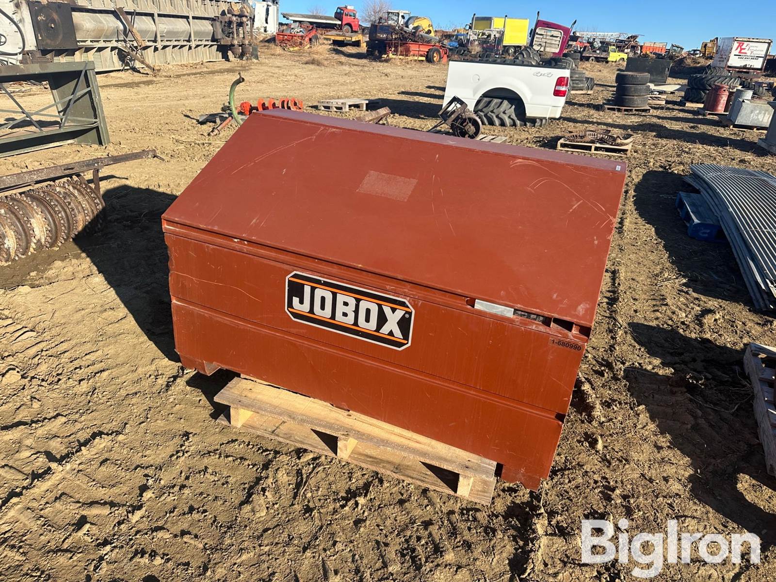 Jobox 1-680990 Service Toolbox, Steel Frame, Forklift Slots, 60" Width, 30" Depth, Grab Handles, Top Lid, (QTY-1), NOTE: SEE LOT PHOTOS FOR DETAILS/CONDITION