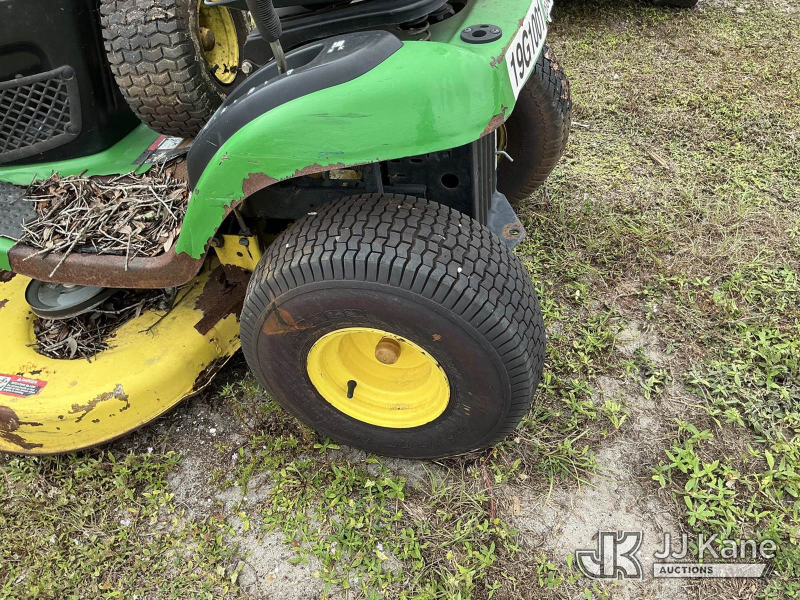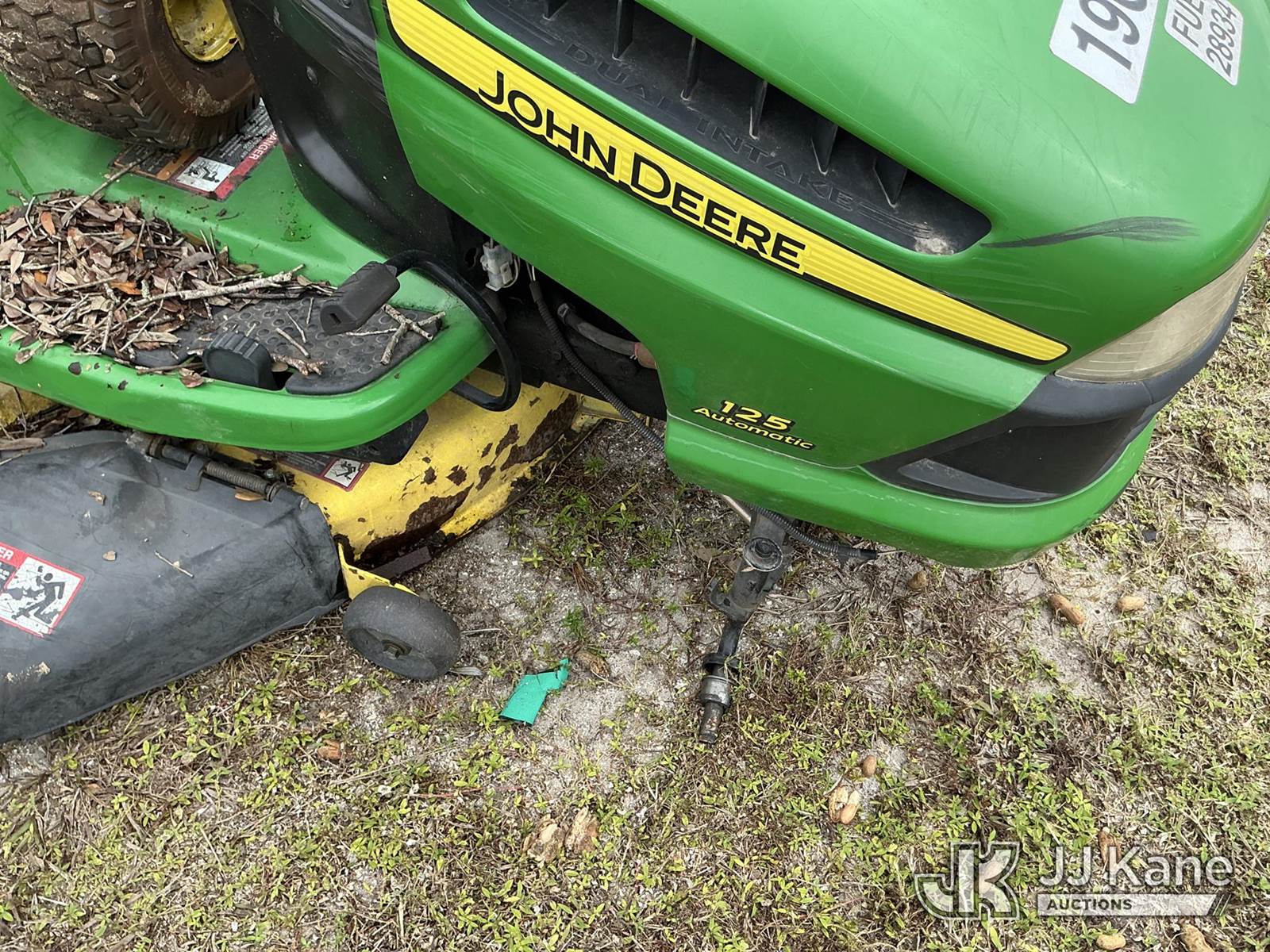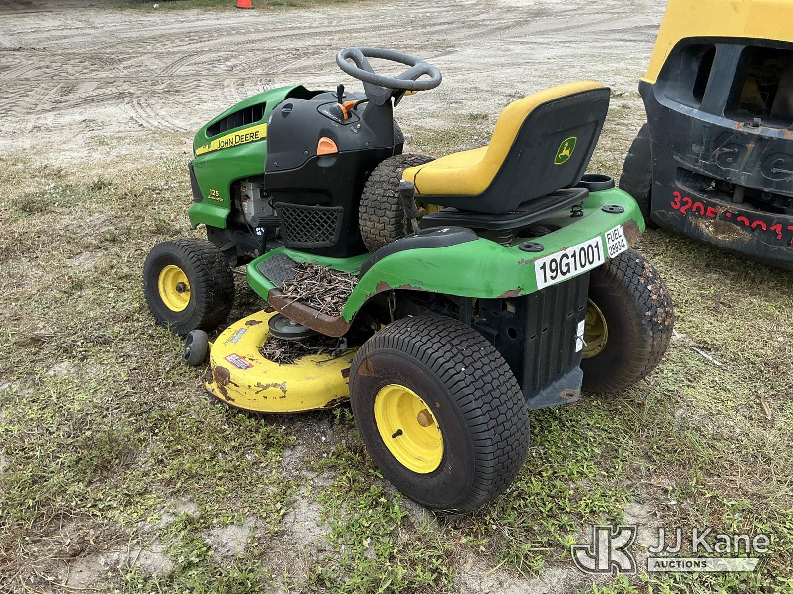 John Deere 0125A Riding Lawn Mower, S/N: GX0125A084552 (Not Running, Condition Unknown) (Parts Missing Or Removed, No Key, No Battery) NOTE: This unit is being sold AS IS/WHERE IS via Timed Auction and is located in Thonotosassa, FL. Inspection & preview days for this unit are the 2 business days prior to the first day of items closing for this auction, item is located at 11720 N US 301 Thonotosassa, Fl 33592 and hours of operations are 8a-4p. For pre-sale questions, please contact Office Staff @ (813) 986-2485. (Buyer is responsible for removal. Assistance by consignor or JJ Kane Auctioneers is not assured.)