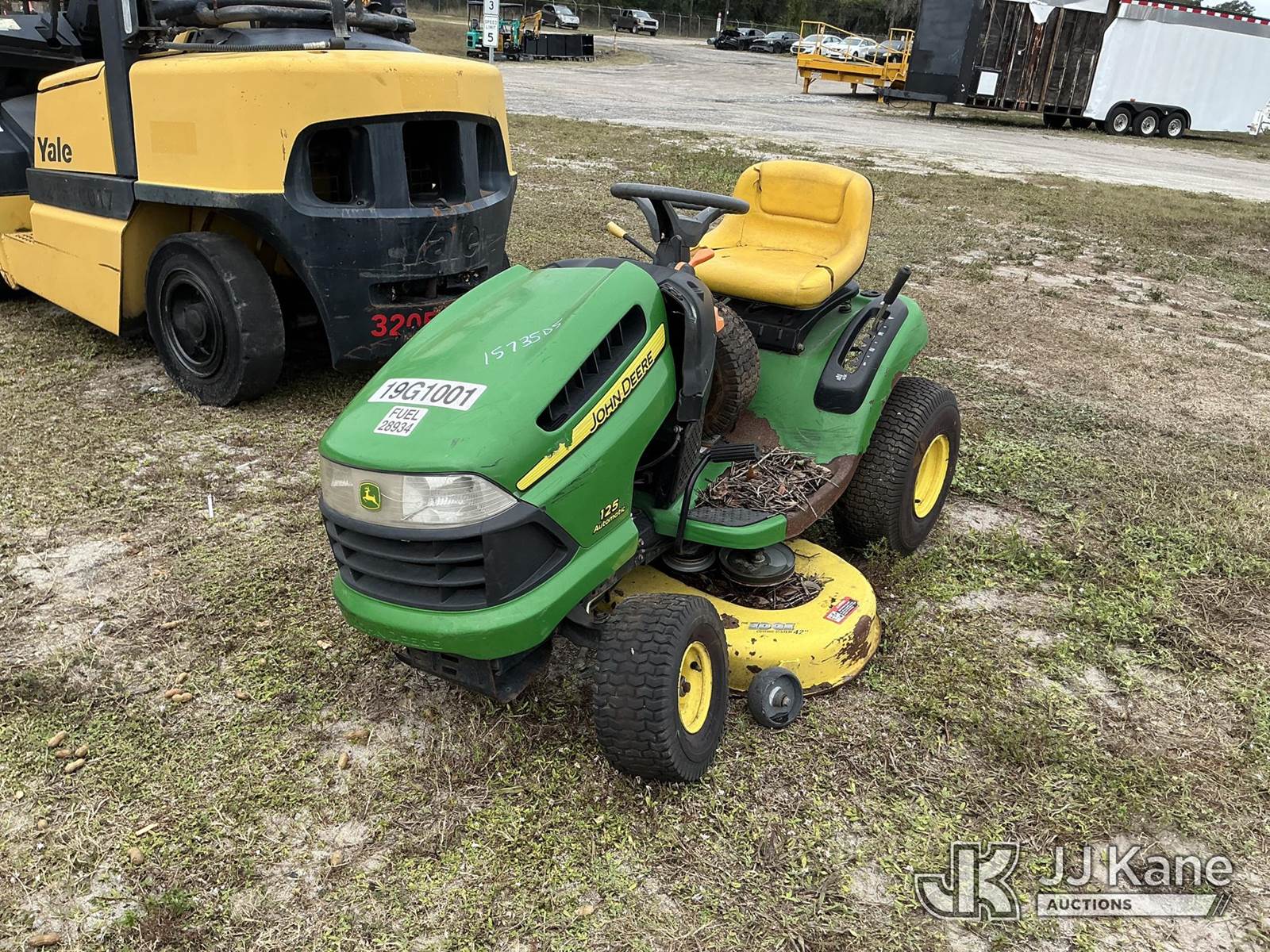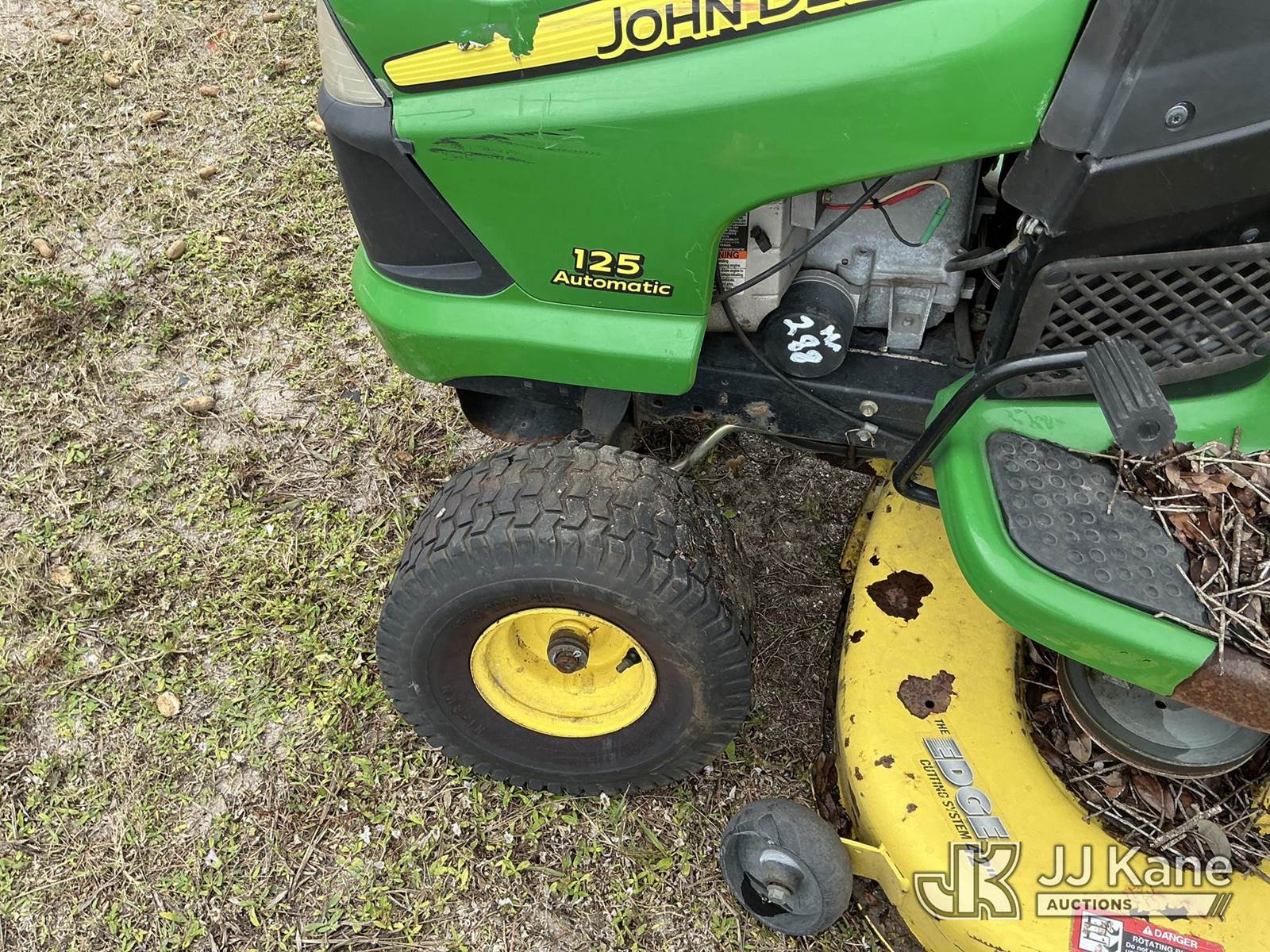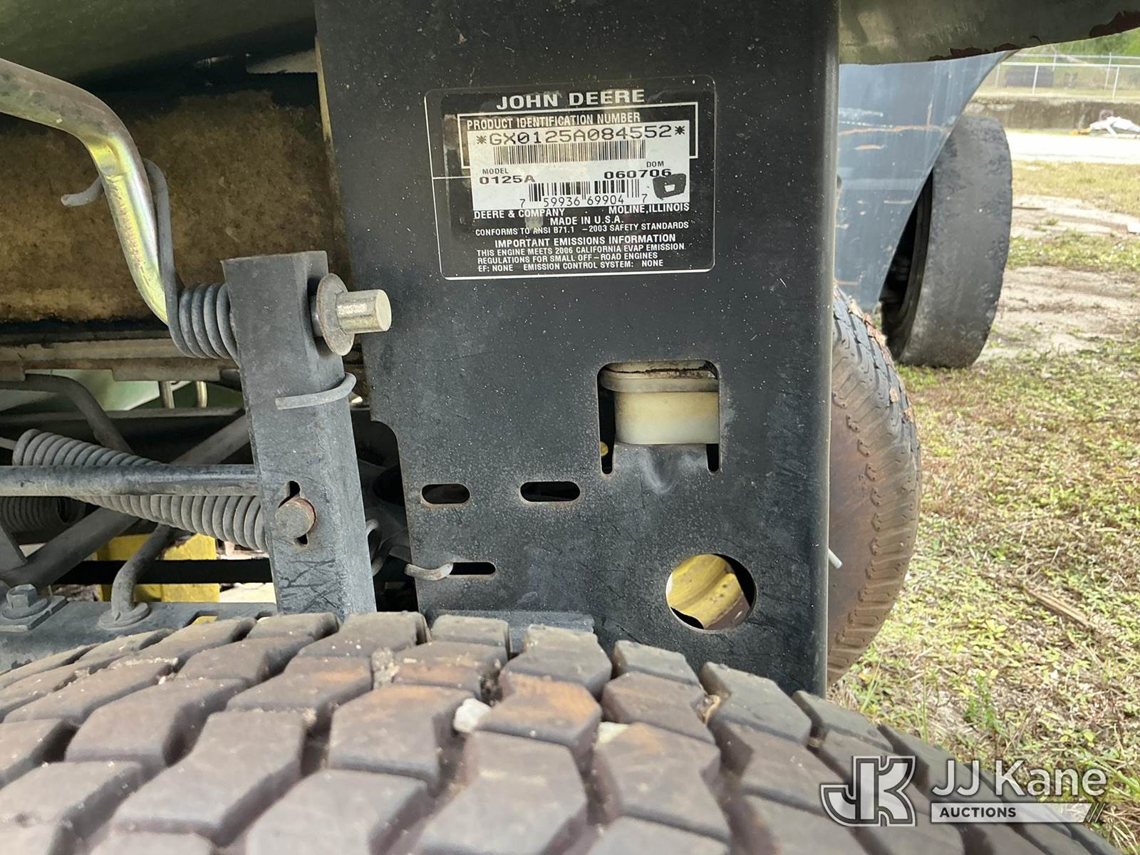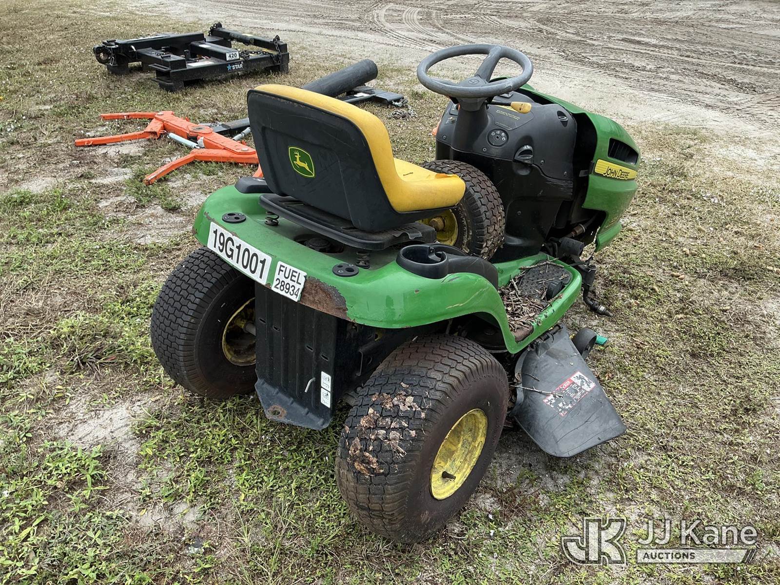 John Deere 0125A Riding Lawn Mower, S/N: GX0125A084552 (Not Running, Condition Unknown) (Parts Missing Or Removed, No Key, No Battery) NOTE: This unit is being sold AS IS/WHERE IS via Timed Auction and is located in Thonotosassa, FL. Inspection & preview days for this unit are the 2 business days prior to the first day of items closing for this auction, item is located at 11720 N US 301 Thonotosassa, Fl 33592 and hours of operations are 8a-4p. For pre-sale questions, please contact Office Staff @ (813) 986-2485. (Buyer is responsible for removal. Assistance by consignor or JJ Kane Auctioneers is not assured.)