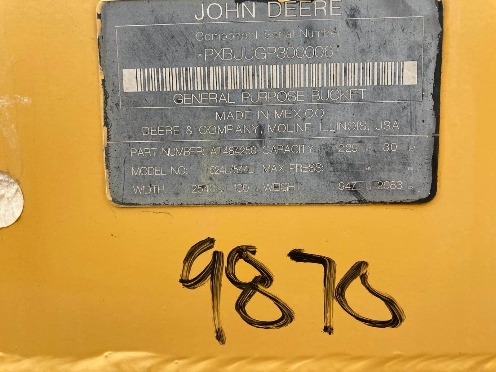 John Deere 100" 524L 544L 3 YARD Bucket