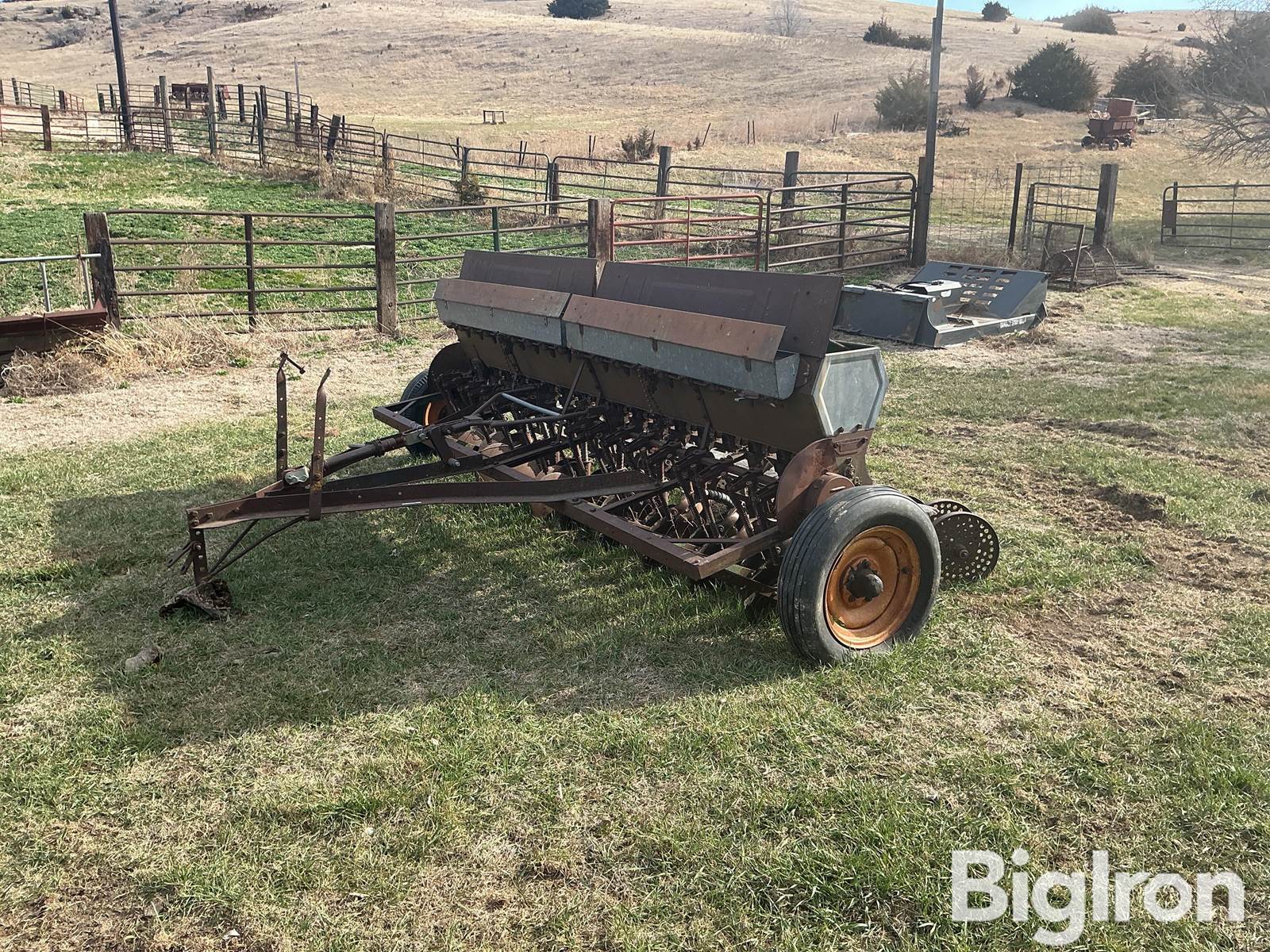 John Deere 12’ Pull-Type Drill, 6.00-16 Operational Tires, Pin Hitch, Mechanical Meter, 7.5” Spacing, Cast Closing Wheels, Alfalfa Box, Jack Stand
