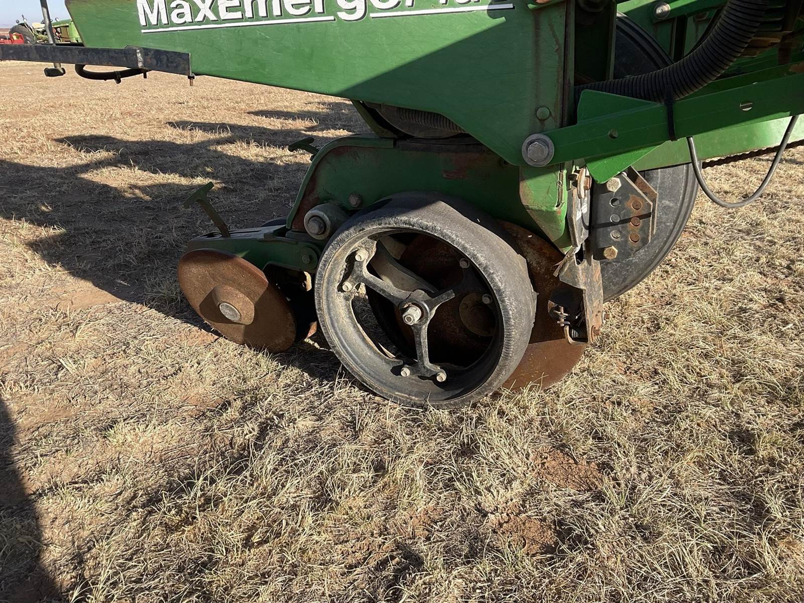 John Deere 1720 12 row 38'' stack fold planter. Has the MaxEmerge Plus row units and vacuum system. Ground drive.