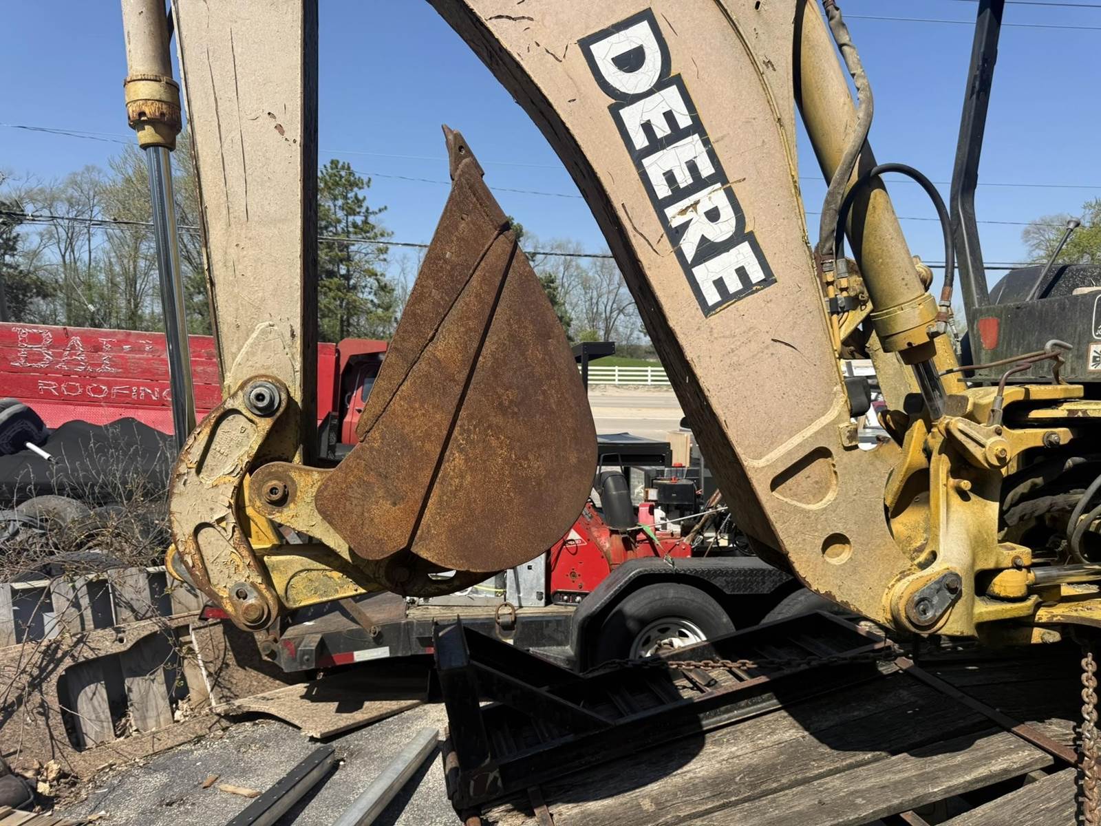 4.5L Turbo Diesel Engine, 4 Speed Transmission, 4X4, Differential Lock, Extended Backhoe Boom, Front Loader Bucket, Approx 80" Bucket, Backhoe Bucket 18", Tires 19.5L-24, TRAILER NOT INCLUDED
