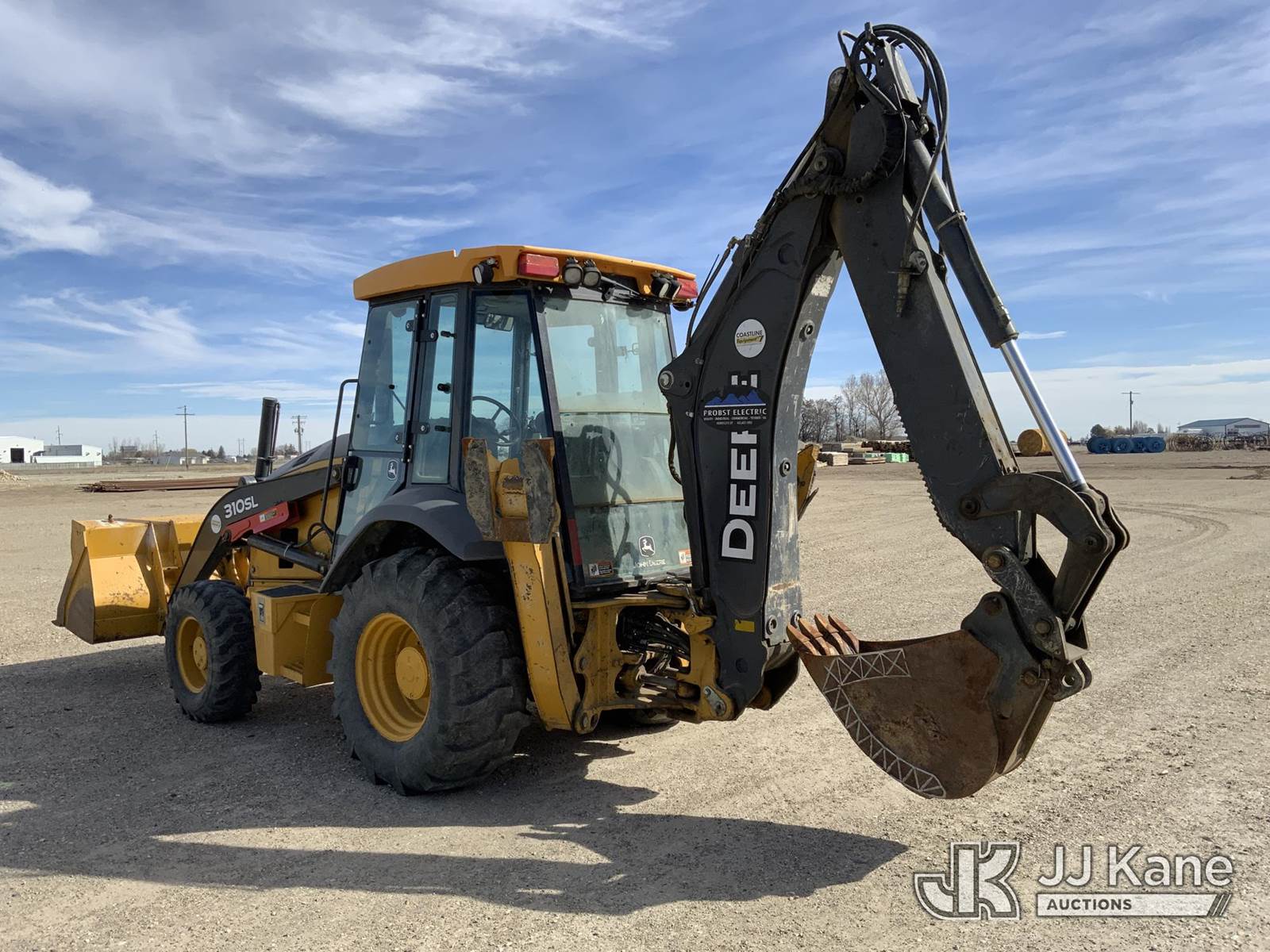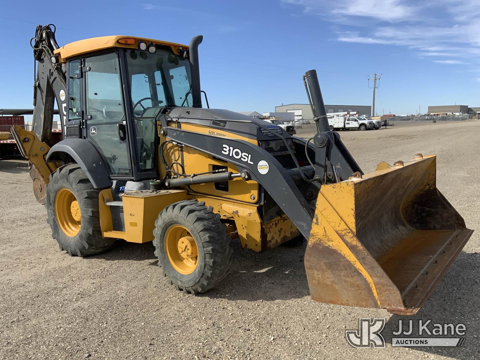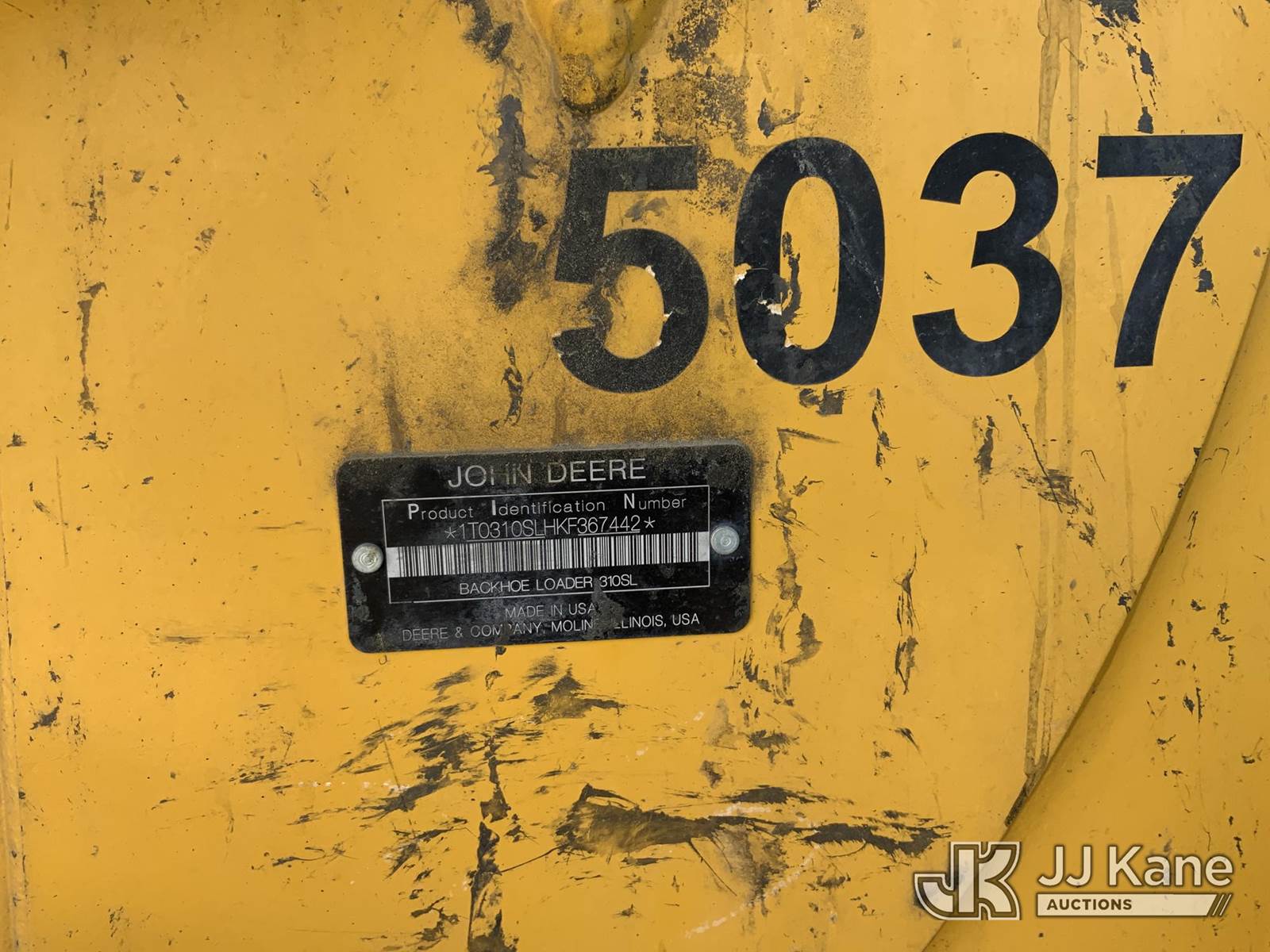 John Deere 310SL Tractor Loader Backhoe, s/n 1T0310SLHKF367442, John Deere diesel, powershift, A/C, with Front GP bucket, quick coupler, 15” digging bucket, 3rd valve, enclosed cab, Lower left front glass broken (Runs, Moves & Operates) (Reads 4,675 hours) NOTE: This unit is being sold AS IS/WHERE IS via Timed Auction and is located in Rupert, ID. For more information & removal arrangements please contact John Kaveney @ 949-212-4177. (Buyer is responsible for removal. Assistance by consignor or JJ Kane Auctions is not assured.)