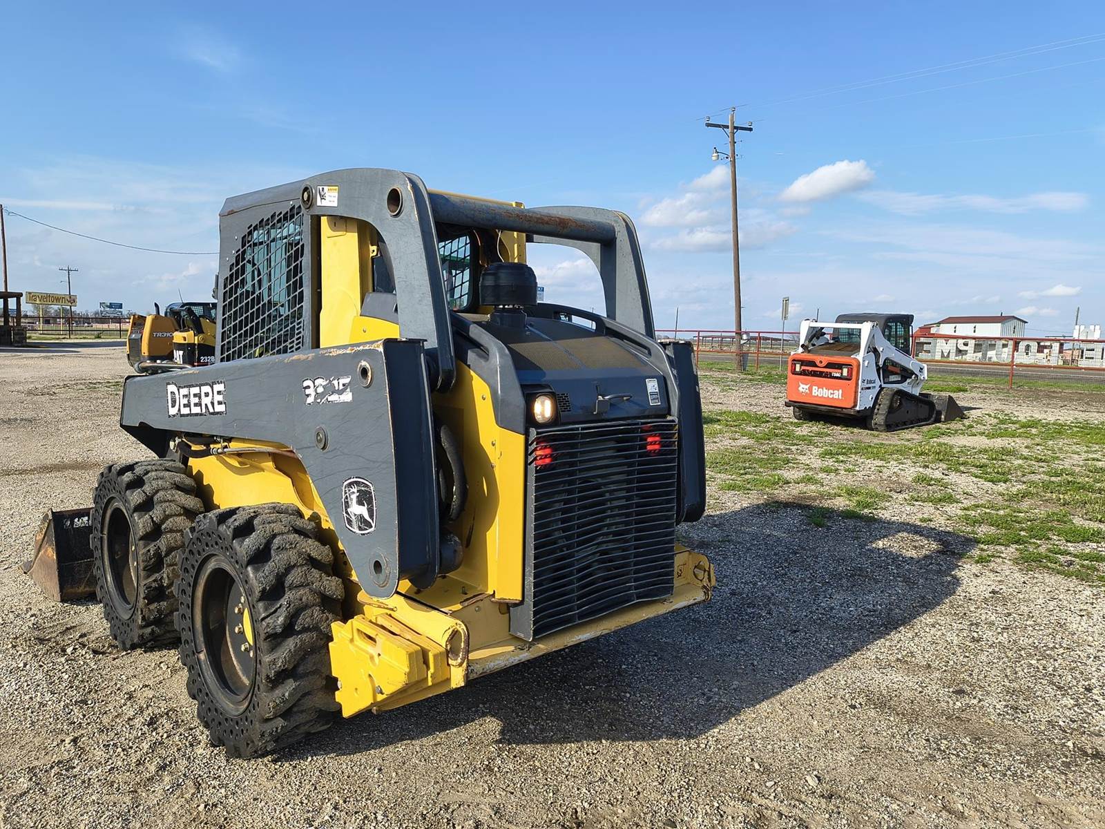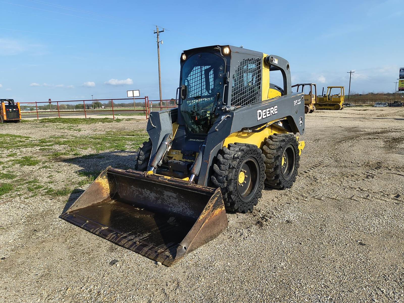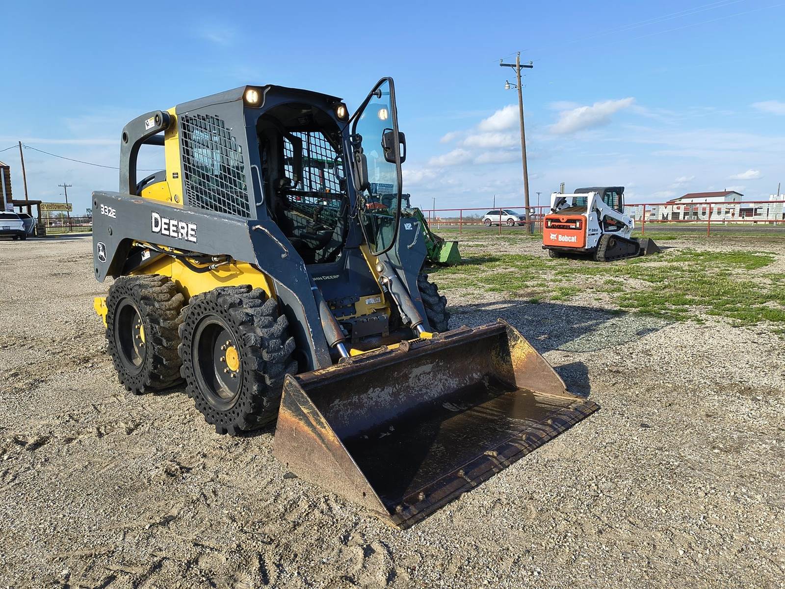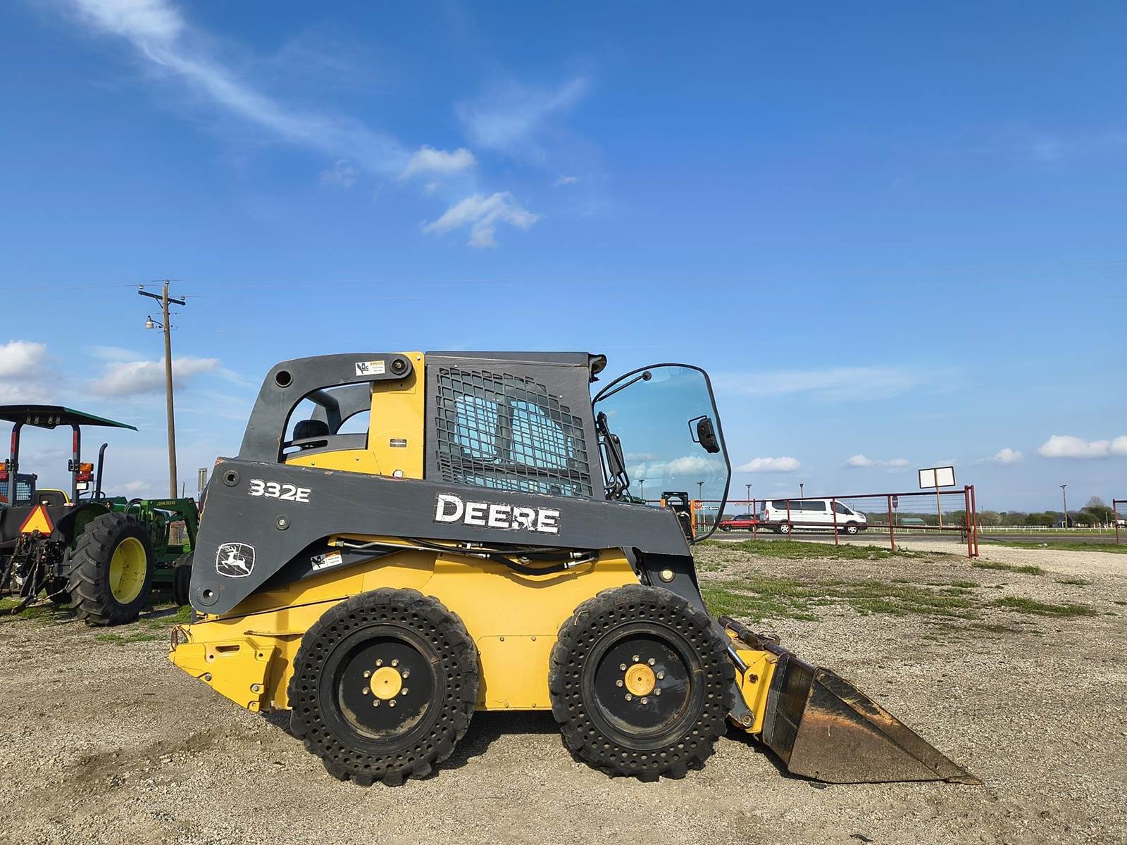 2013 JOHN DEERE 332E SKID STEER LOADER TRACTOR. HARD TO FIND MACHINE. NO DEF. 97HP TURBO DIESEL. ENCLOSED CAB. COLD AC AND HEAT. 2 SPD. GOOD SOLID TIRES. ONLY 25XX ORIGINAL HRS. H PATTERN HAND CONTROLS (can likely be swapped to pilot). BOBCAT STYLE POWER QUICK ATTACH BUCKET. RUNS AND OPERATES TIGHT. ALWAYS CALL FOR CURRENT AVAILABILITY. FINANCING AVAILABLE W.A.C. (no in-house). LOWER 48 USA SHIPPING AVAILABLE. CALL (972)57I-9674 OR (Espanol 972-57I-lO55) TODAY.
