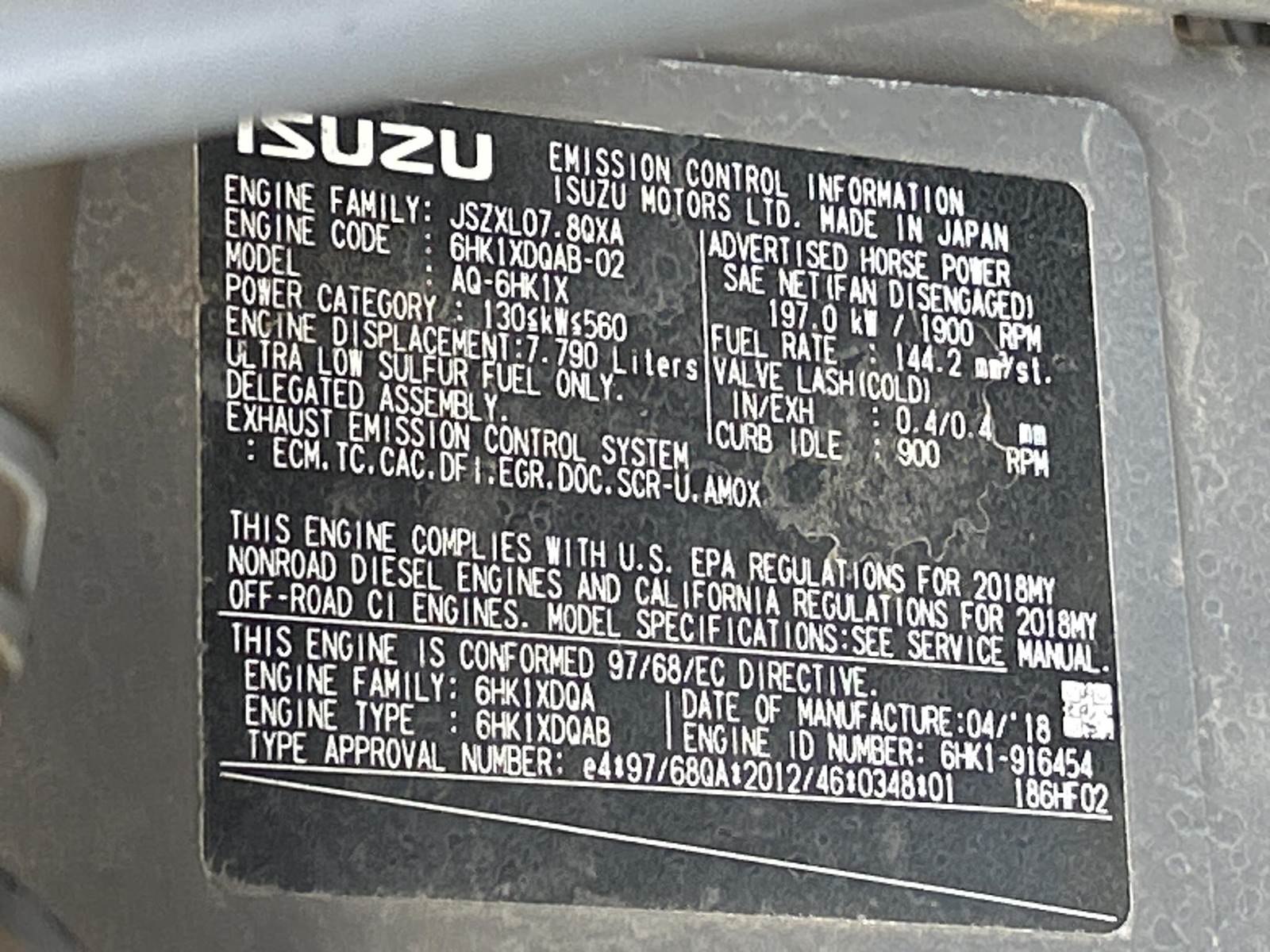 Isuzu AQ-6HK1X Turbo Diesel Engine, Two Speed, Approx 54" Bucket Width, Hydraulic Quick Coupler, Hydraulic Thumb, Plumbed to the Front, EROPS, Joystick Controls, Heat, A/C, Radio, Heated/Air Ride Seat, Approx 32" Metal Track Pads, Approx 134" Overall Machine Width