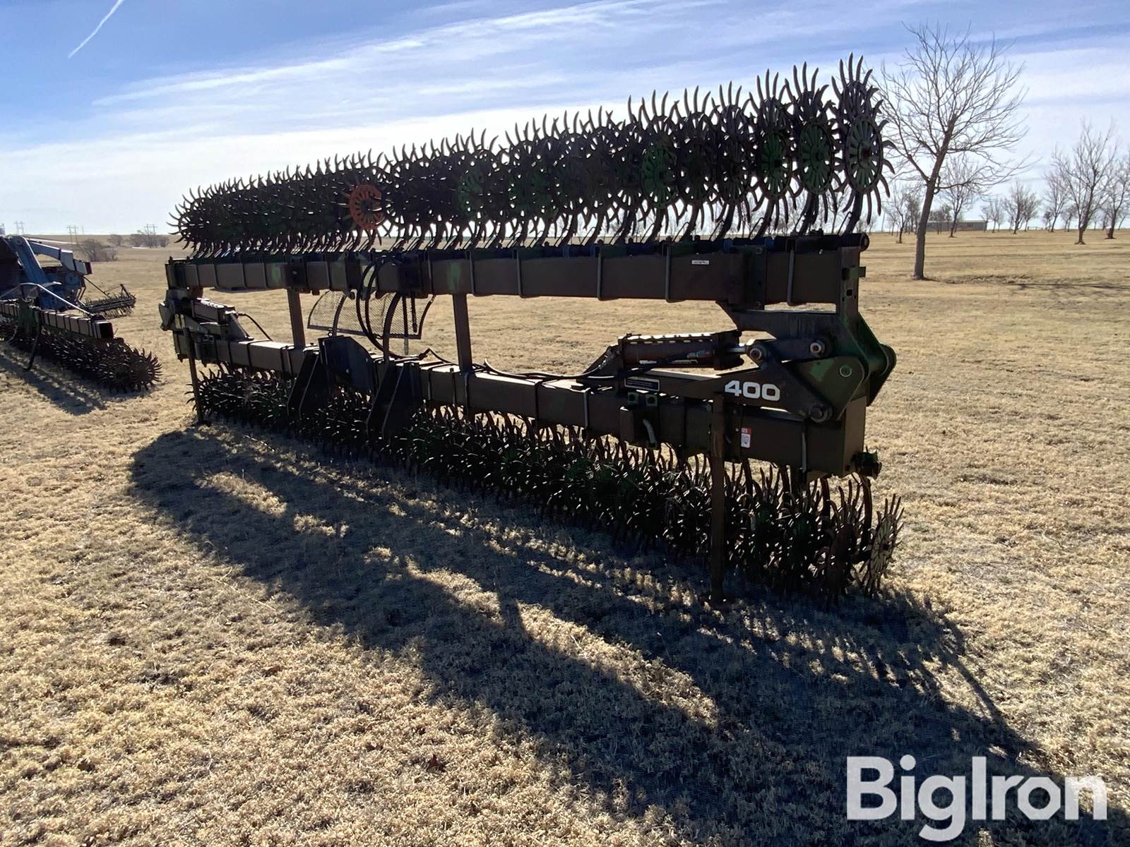 John Deere 400 30' Rotary Hoe, 3 Point Hitch, Power Folding, Folding, 7" Spacing, 30' Width, 21' Transport Width, 36 Bottom x2 , 17 left x 2 , 17 right x 2, SN: N00400F005147