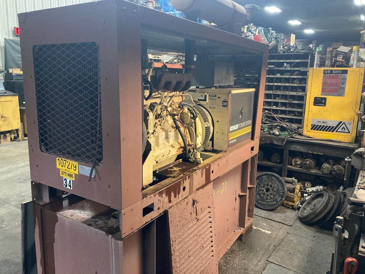 RUN TESTED JOHN DEERE 4039D 34KW KOHLER DIESEL GENERATOR SET FOR SALE. 983 HOURS SHOWING ON METER, 43 KVA, 60 HZ, 3 PHASE, 277/480 VOLTS, .8 PF, STANDBY UNIT. *CONTROL PANEL GAUGES DO NOT WORK. 65 LBS OIL PRESSURE.