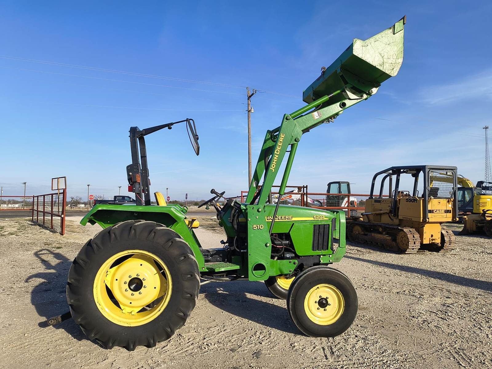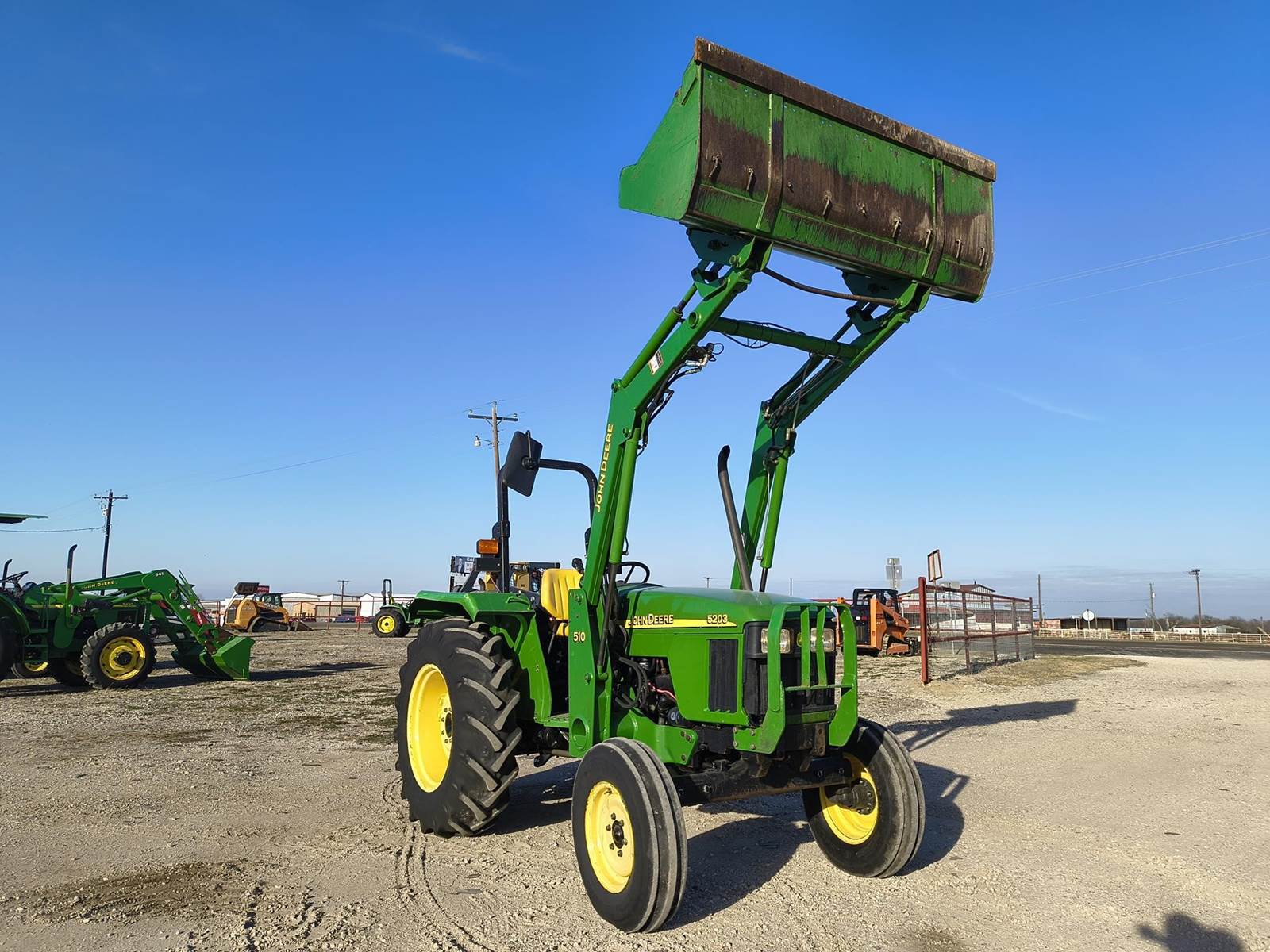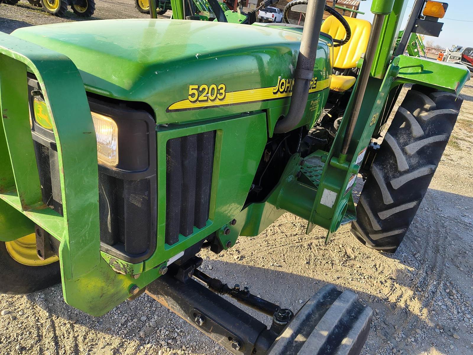 2003 JOHN DEERE 5203 UTILITY TRACTOR. 56HP JD PRE EMISSIONS DIESEL. ONLY 996 HRS READING ON WORKING METER. 9 SPD TRANSMISSION. QUICK ATTACH BUCKET. JOYSTICK MOUNTED 3RD FUNCTION. TRACTOR RUNS AND OPERATES WELL. ALWAYS CALL FOR CURRENT AVAILABILITY. COMPETITIVE FINANCING AVAILABLE W.A.C. (no in-house) TROUGH OUR DIRECT WEBSITE ONLY AT WWVV.FASTLANEEQUIP.C0M. CALL (972)57I-9674 OR (972)57I-lO55 TODAY.