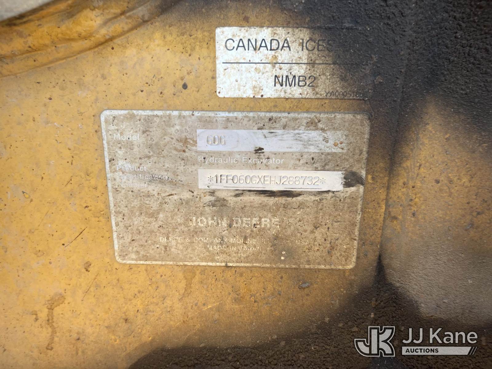 John Deere 60G Mini Excavator, s/n 1FF060GXEHJ288732, Yanmar diesel, Hydrostatic, A/C, with Rubber Tracks, GP Digging Bucket w/ Hydraulic Thumb, Backfill Blade & EROPS, Municipal Owned (Runs, Moves & Operates) (Reads 4,986 hours) NOTE: This unit is being sold AS IS/WHERE IS via Timed Auction and is located in Jackson, TN. For more information & removal arrangements please contact Dalton Childers @ (417) 496-5889. (Buyer is responsible for removal. Assistance by consignor or JJ Kane Auctions is not assured.)