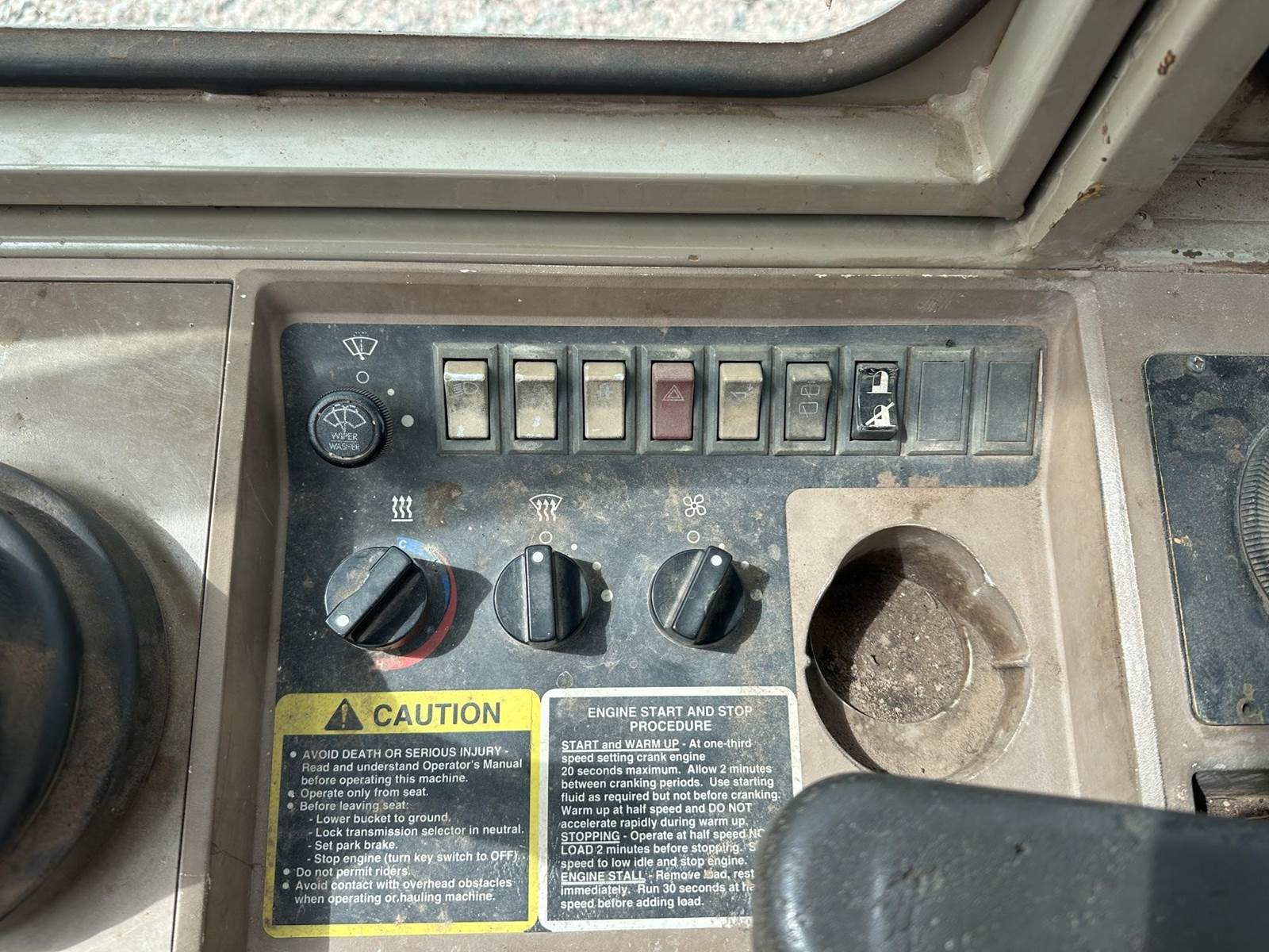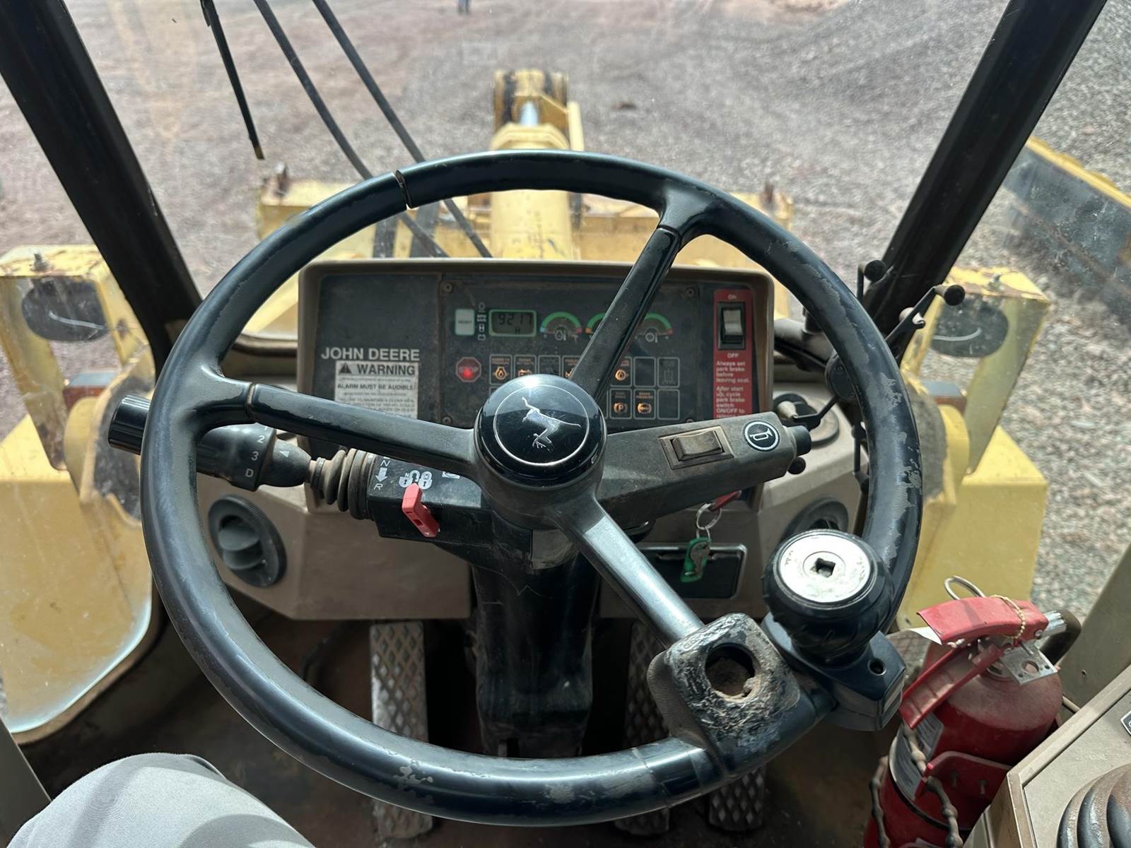 John Deere 6 Cylinder Turbo Diesel Engine, 4 Speed Transmission, Joystick Control, Approx 110" Bucket Width, Articulating, Heat, A/C, Radio, 23.5-25 Tires