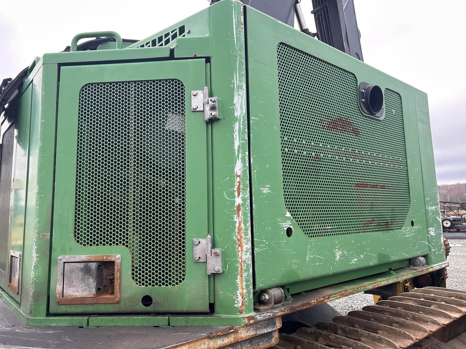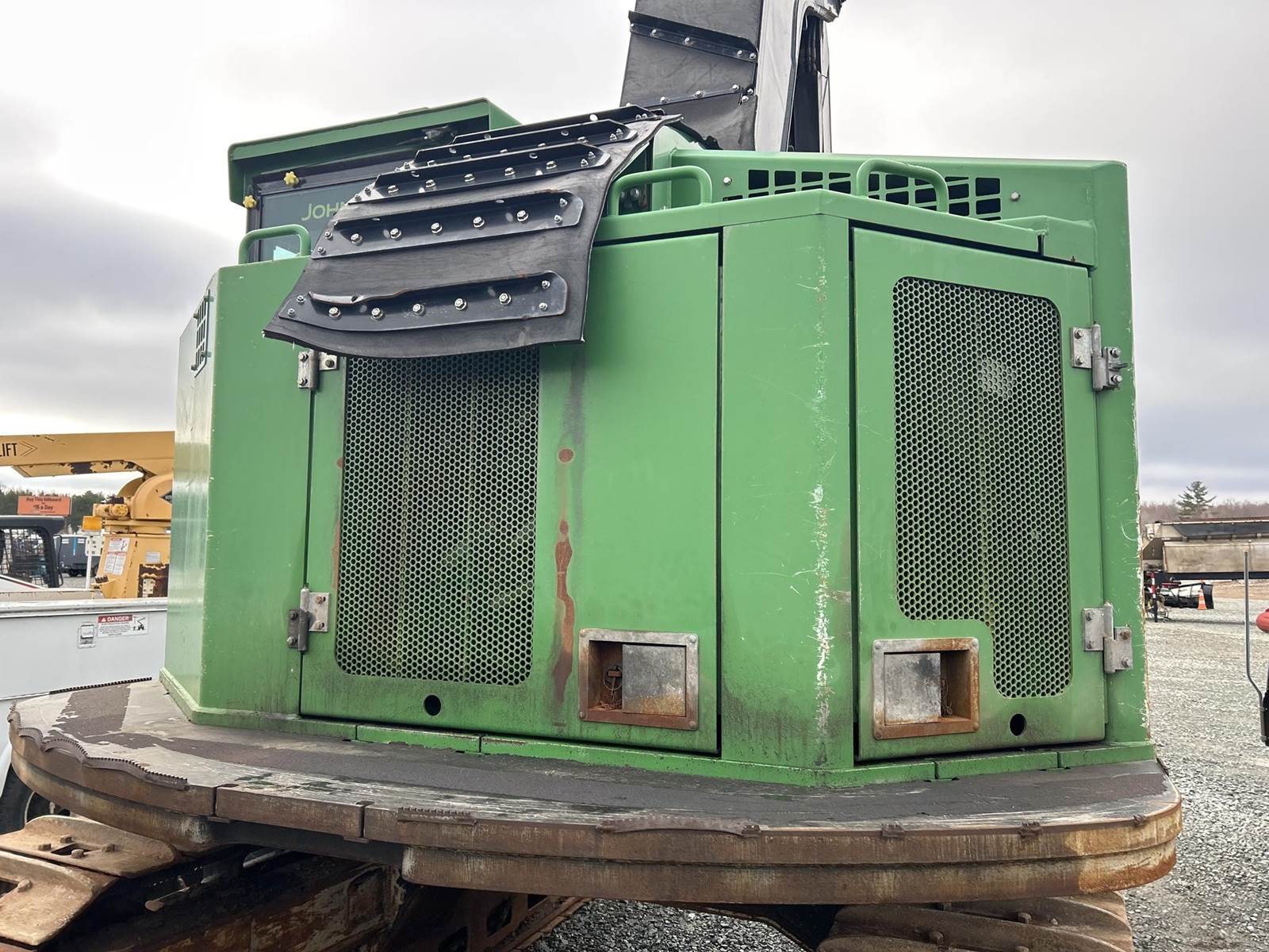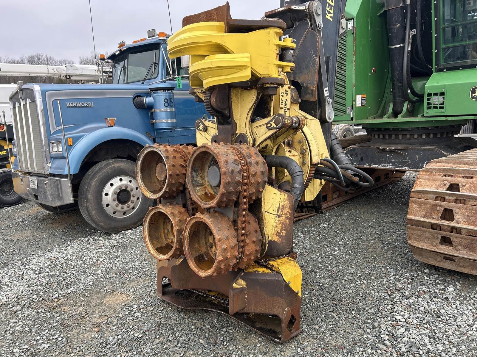 John Deere 6090HT Turbo Diesel Engine, Hydrostatic Drive, JP Skidmore CF-20 4 Roller Harvesting Head, EROPS, Joystick Control, Heat, A/C, Radio, Preheater, JP Skidmore Program, Approx 24" Metal Track Pads, Approx 114" Overall Machine Width