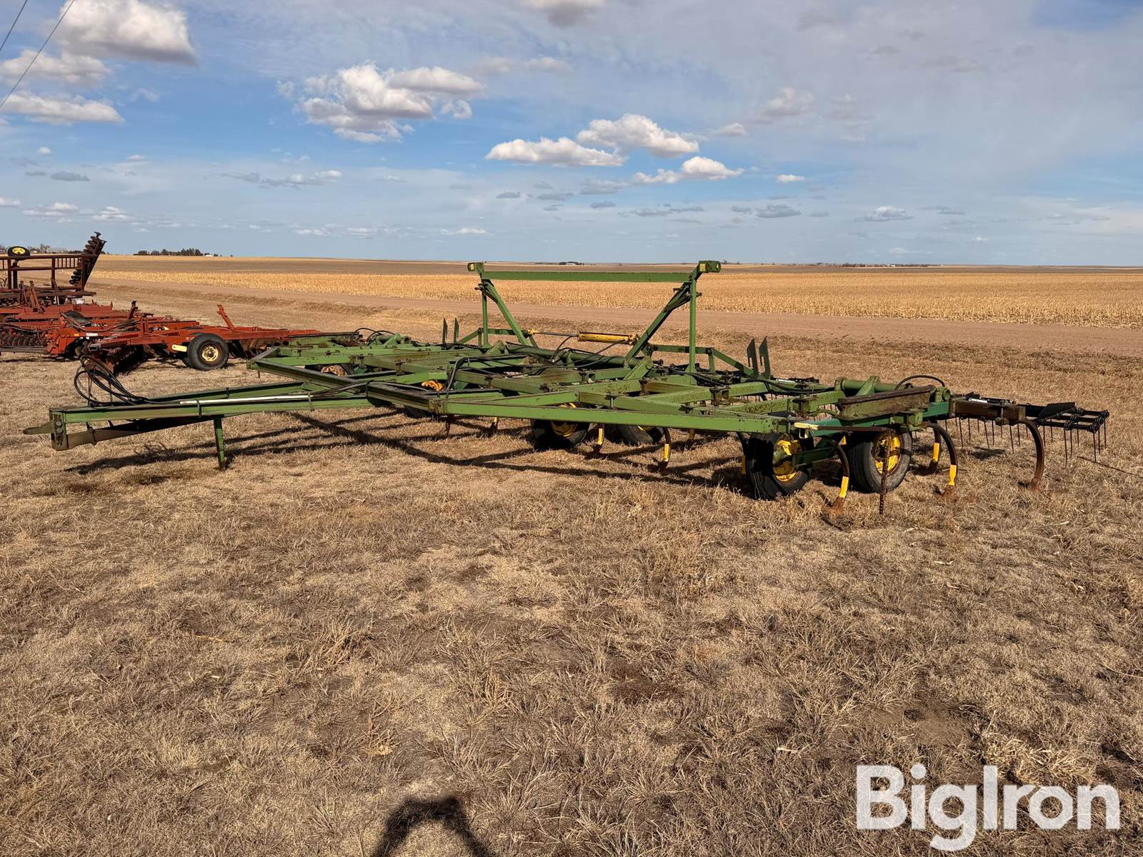 John Deere E1600 Chisel Sweep w/Degelman Harrow, 35' Wide, Pin Hitch, Jack Stand, 12" Shank Spacing, Hydraulic Lift Assist & Folding Wings, 17" Sweeps, 15" Tires, Degelman Harrows, SN: 008773
