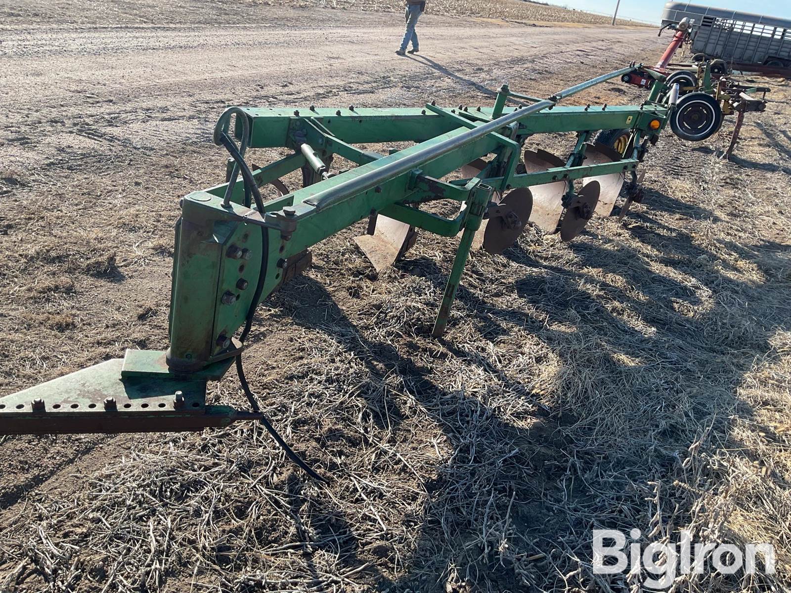 John Deere Plow, Semi Mounted Plow, (5) Bottom, Tail Wheel, Steerable, Trash Covers, E78-15 Tires