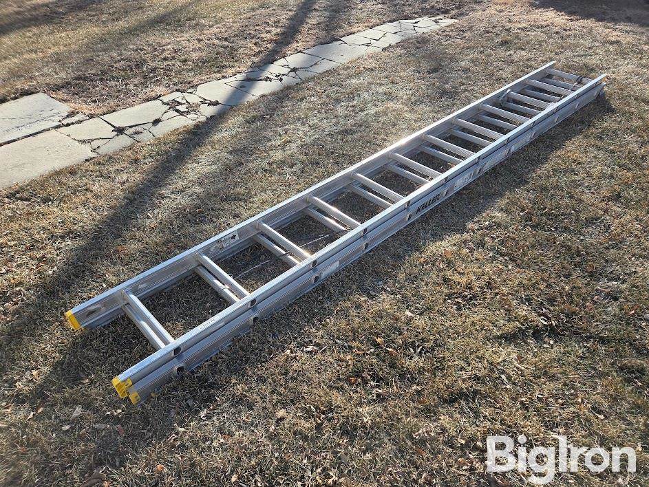 Keller Aluminum Extension Ladder, 24' Length, 23' Reach, 225 pound Capacity, SN: 100529-24