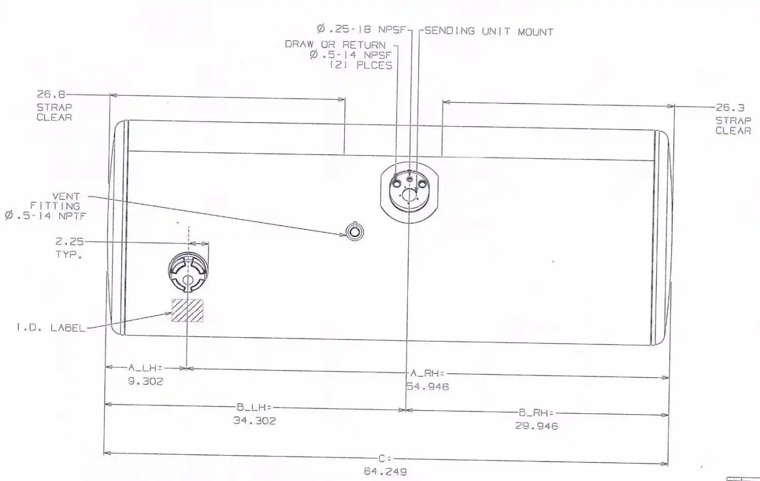 FUEL TANK KENWORTH T800 REAR FILL ALSO FIT FOR KENWORTH W900 2008+ RESERVOIR A CARBURANT KENWORTH T800 BOUCHON ARRIERE, Capacity: 120 GALLONS, Dimensions: 24.5X65, Material: Aluminum
