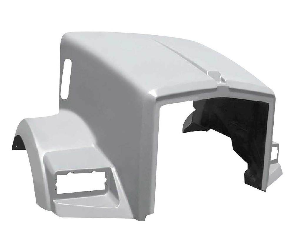 2008 AND UP KENWORTH T800 HOOD, CURVED WINDSHIELD, 120 BBC (BUMPER TO BACK OF CAB) 61 1/2" CENTERLINE, FULL FENDER, PLASTIC OE REPLACEMENT WITH RIGHT INTAKE CUTOUT FOR INTERNAL AIR