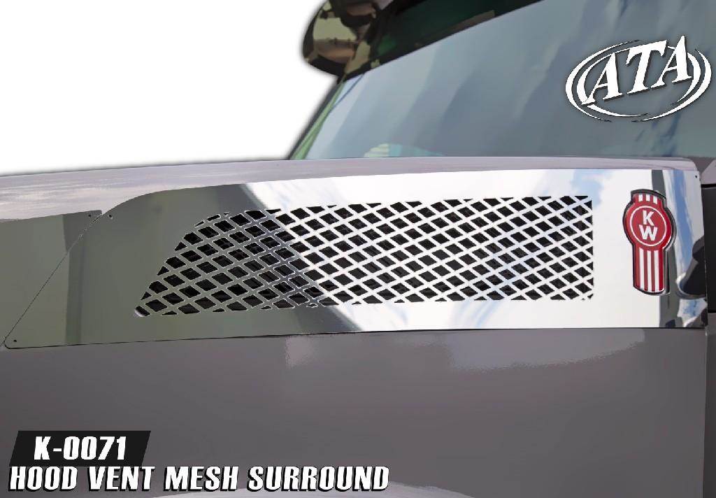 2014-2024, KENWORTH, T880, HOOD VENT MESH & SURROUND, STAINLESS STEEL 22 GA.