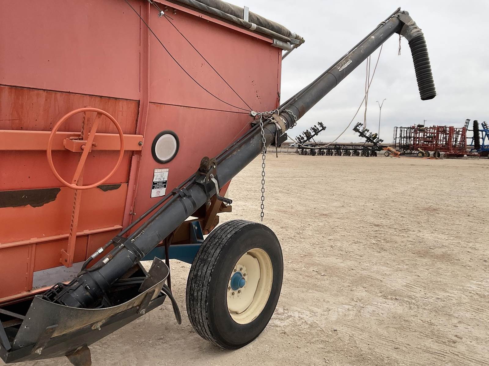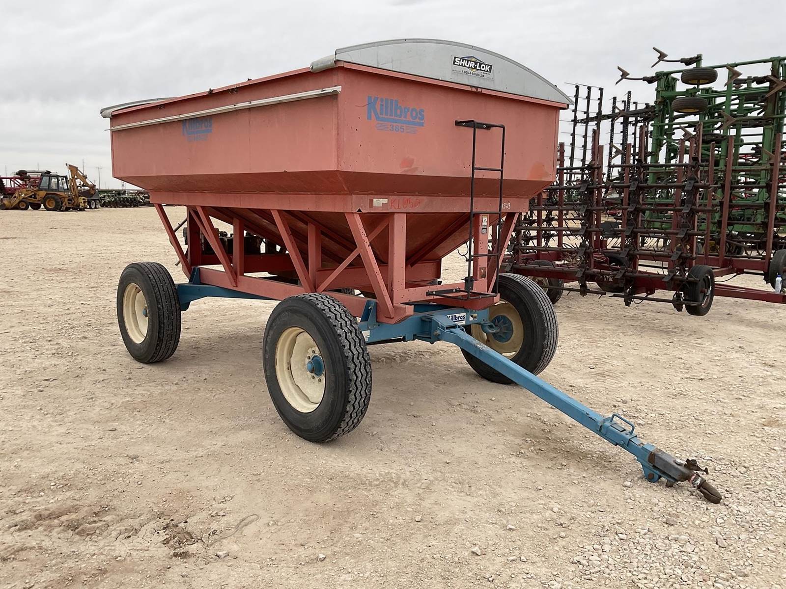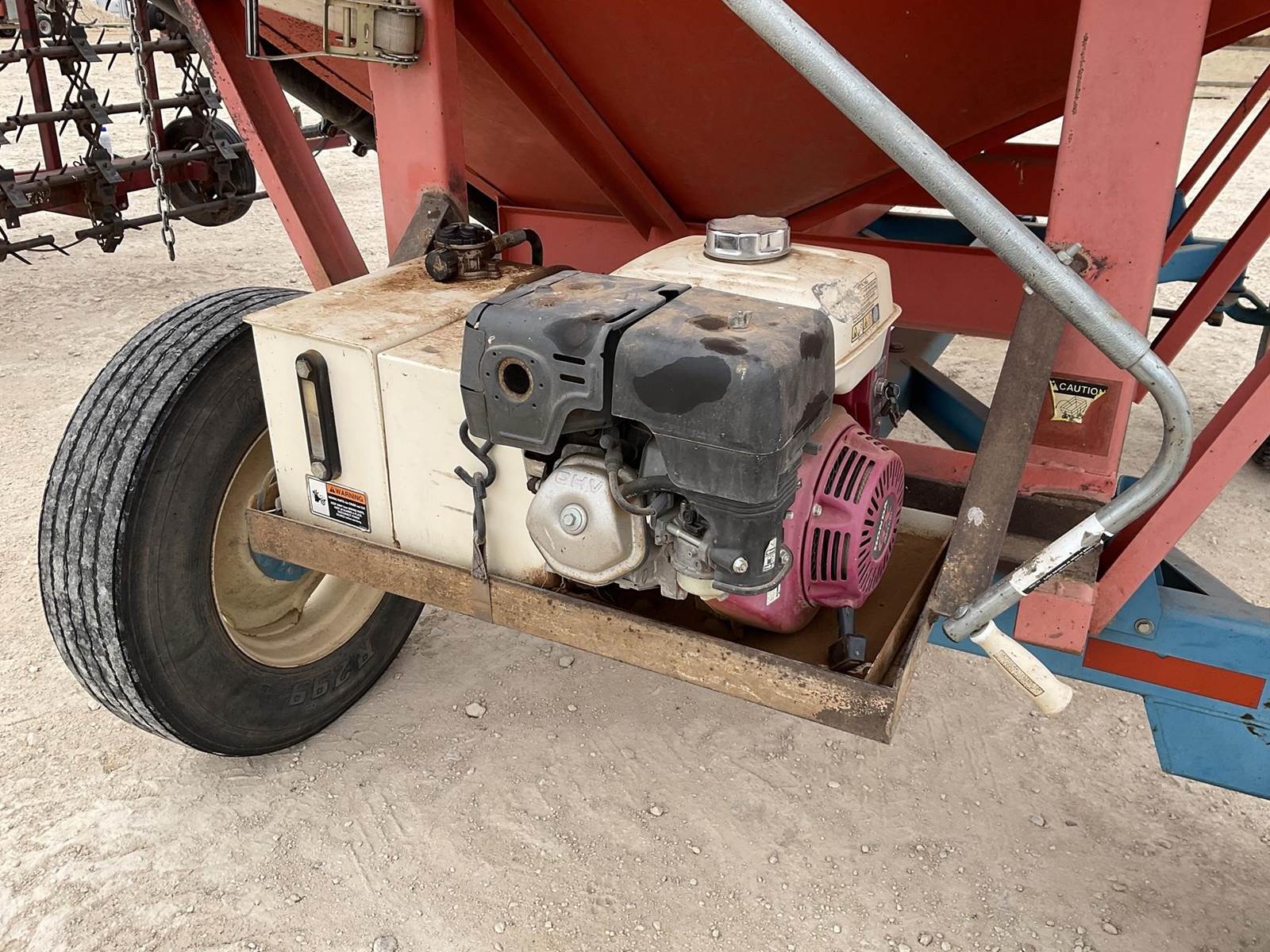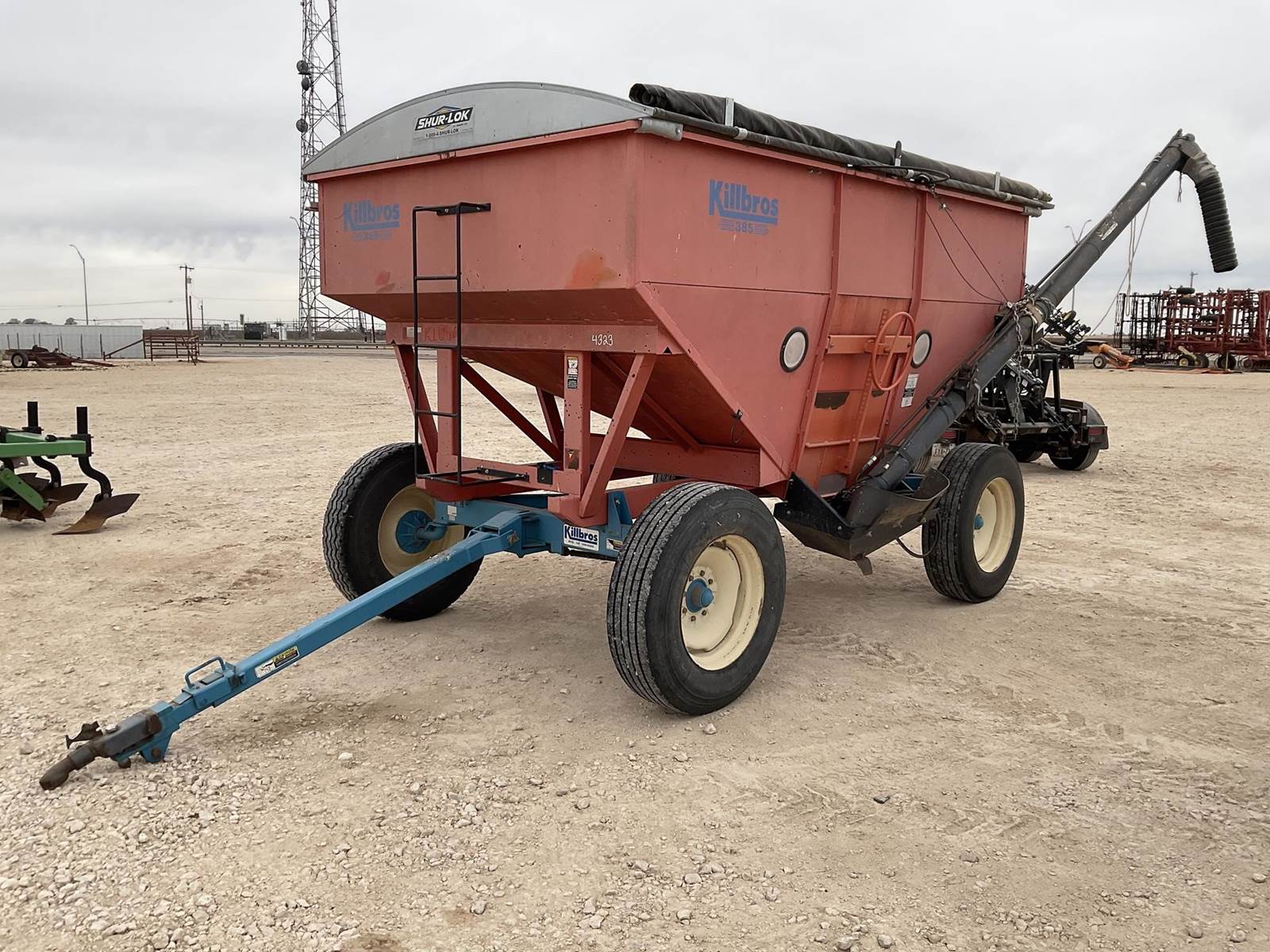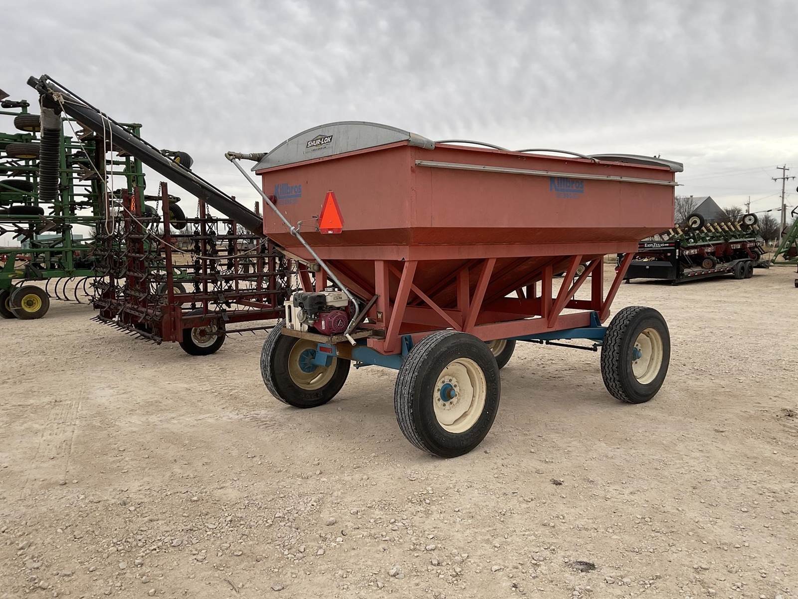 Killbros 385 gravity wagon. Has a tarp and auger. The auger runs off the Honda motor on the back with the hydraulic tank on it. Nice gravity wagon!