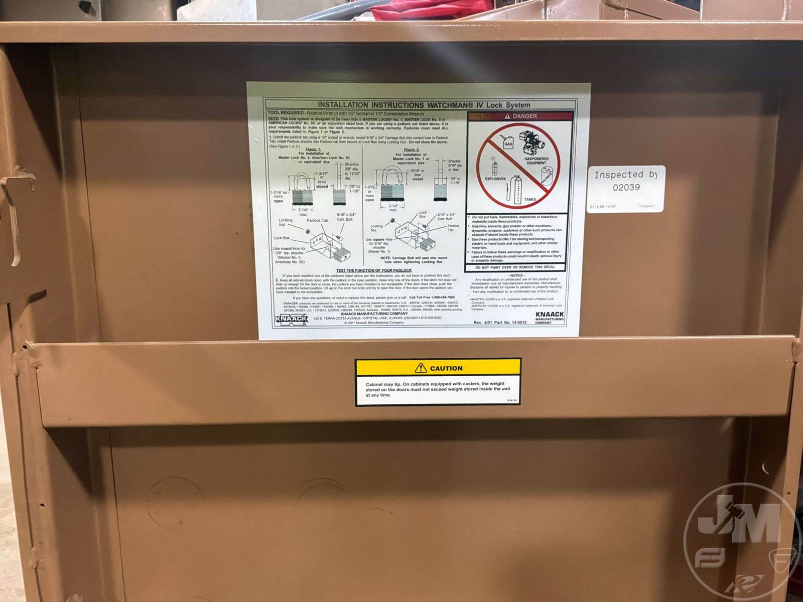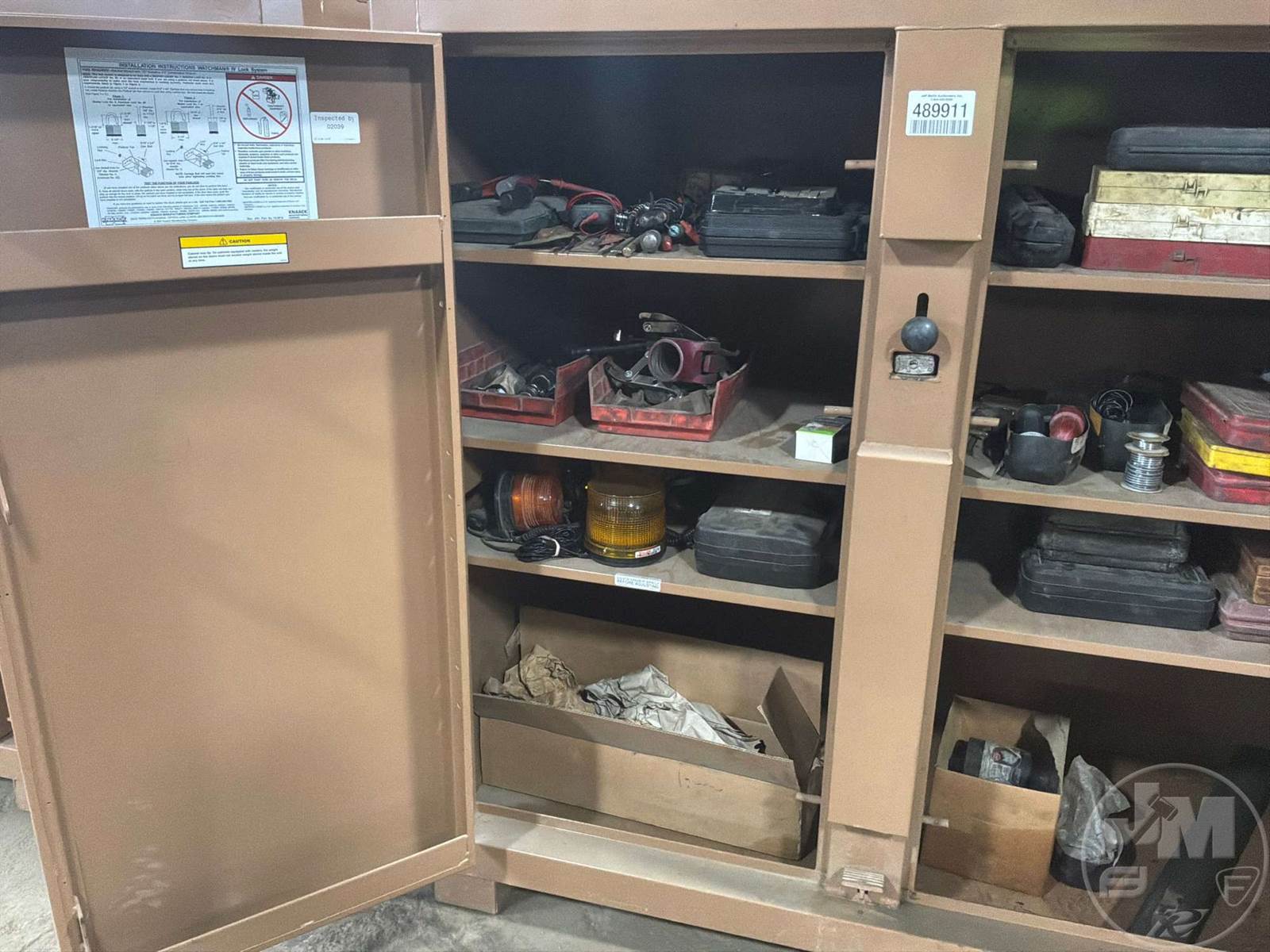 WITH CONTENTS, LOCKABLE JOB-MASTER CABINET 60"X30"X60"