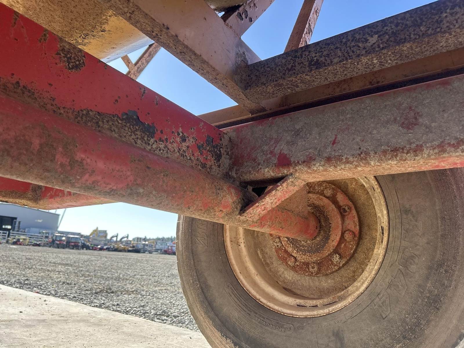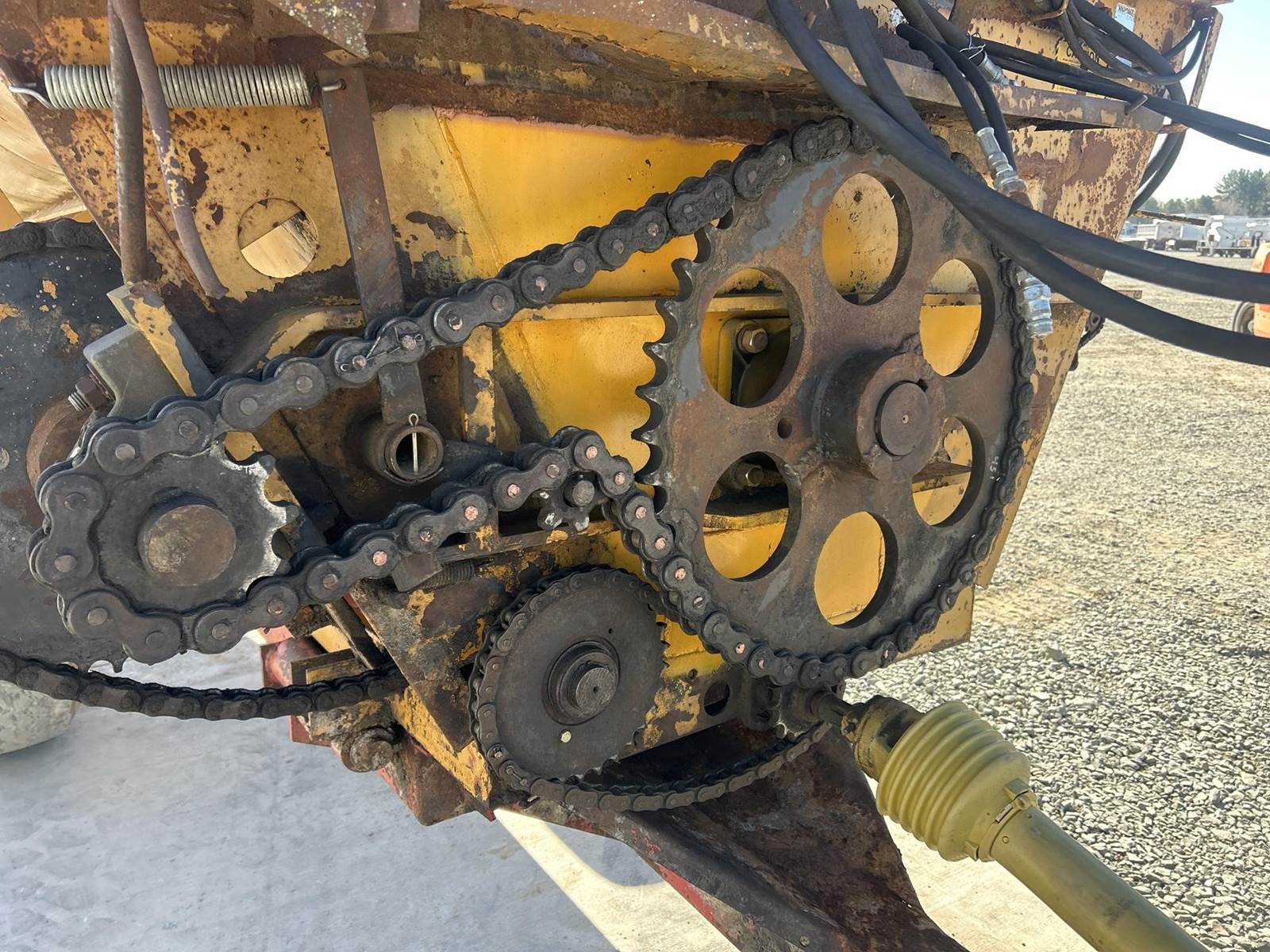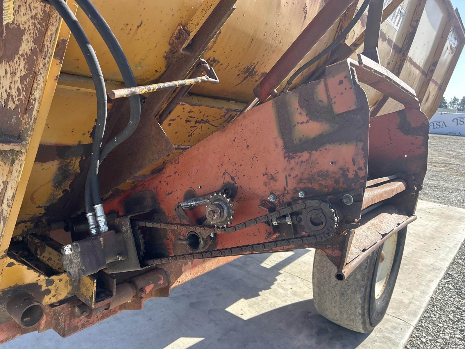 PTO Driven, Approx. 14' Length, (3) Augers, Approx. 2' Auger Length, Adjustable Pin Hitch, Approx. 30" Conveyer, Lift Gate, 425/65R22.5 Tires