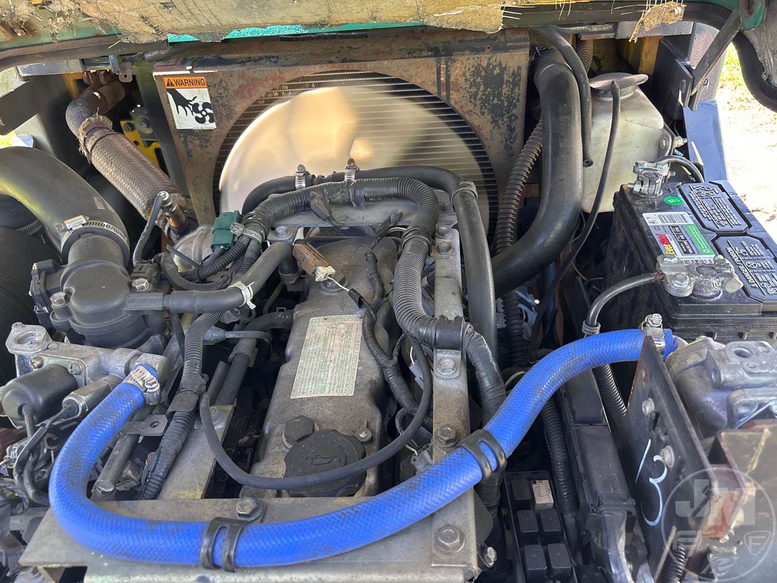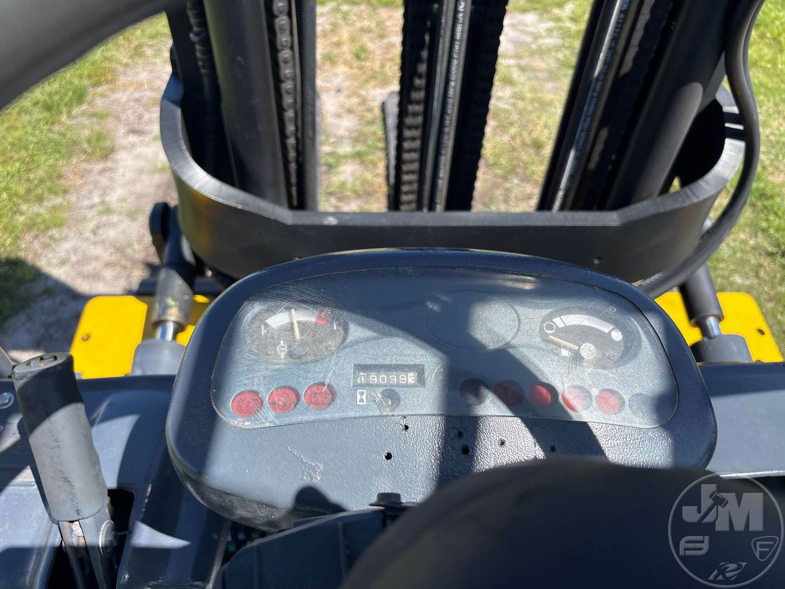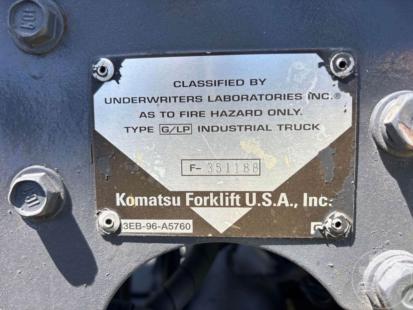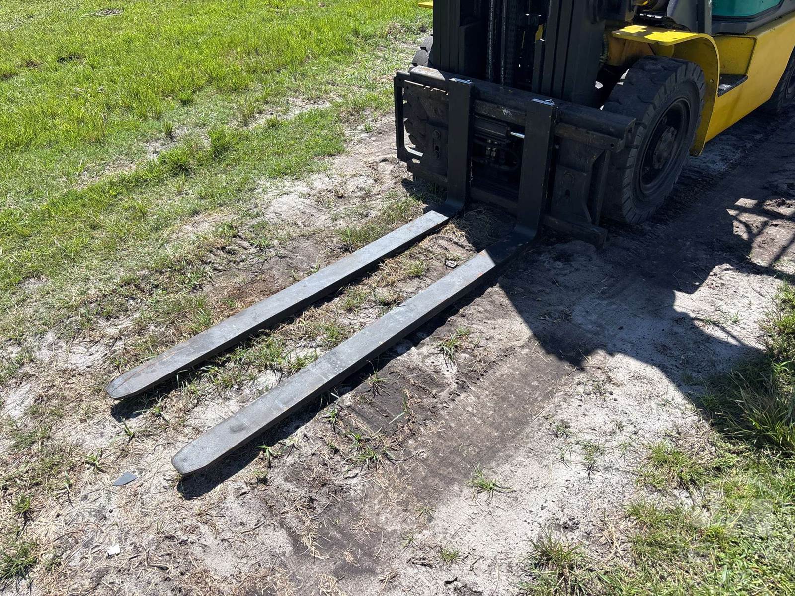 KOMATSU CUSHION TIRE FORKLIFT, 4 CYLINDER , LPG, CANOPY, TILT CARRIAGE, SIDE SHIFT, 3 STAGE MAST, 60" FORKS, HOUR METER READS: 190390