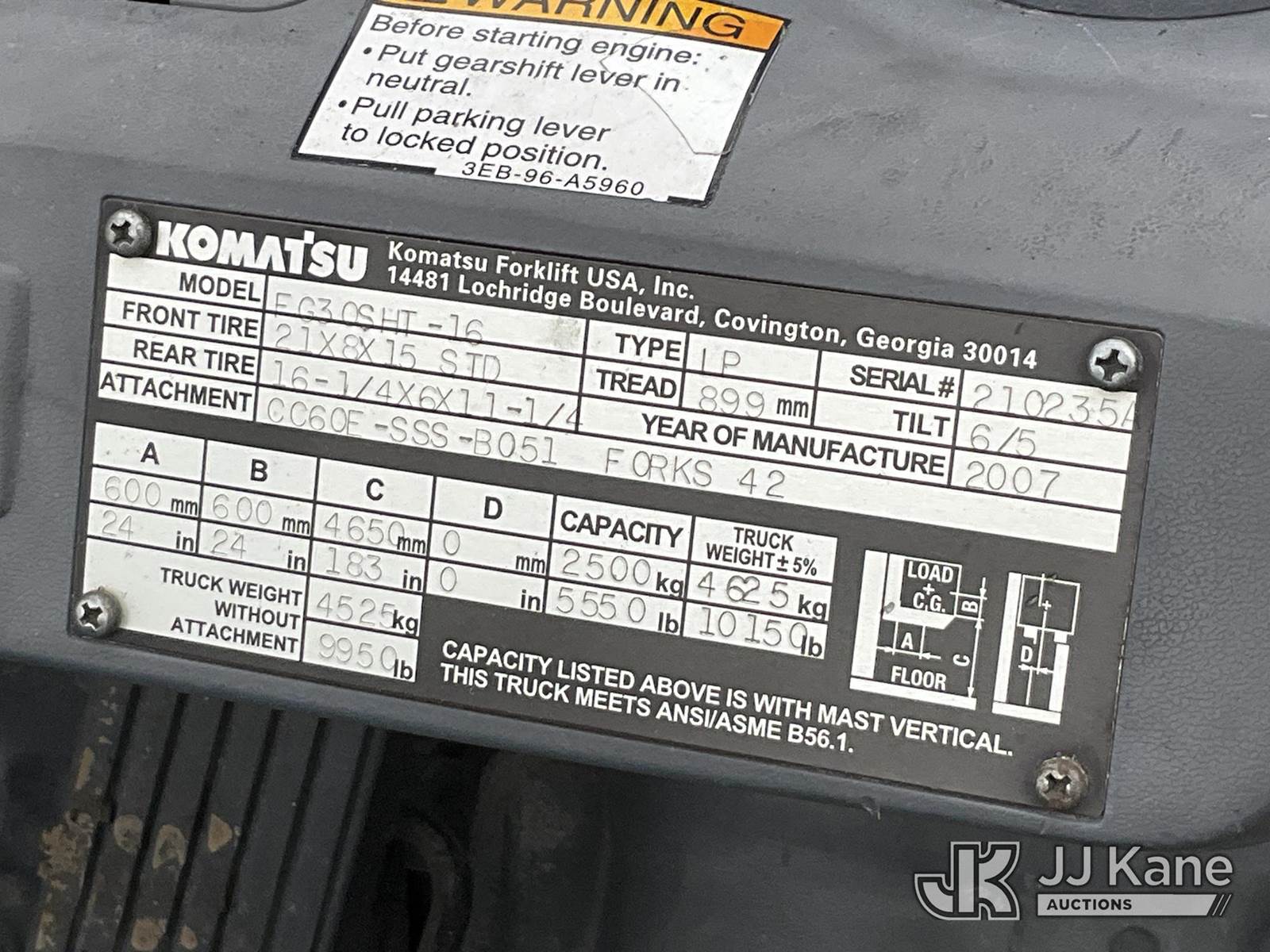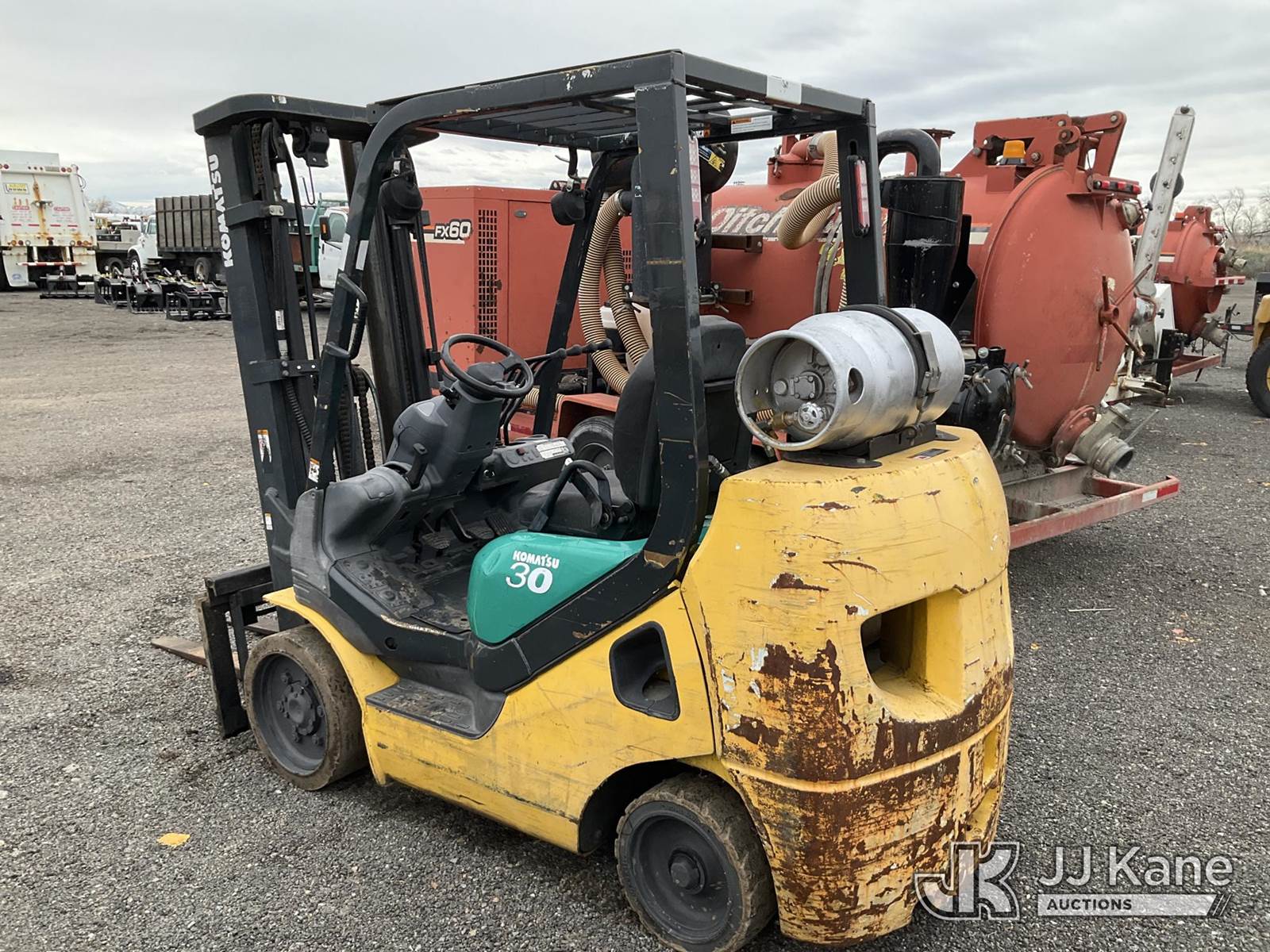 Komatsu FG30 Forklift, s/n 210235A, LPG, (Not Running, Condition Unknown) NOTE: This unit is being sold AS IS/WHERE IS via Timed Auction and is located in Salt Lake City, UT. Inspection & preview days for this unit are the 2 business days prior to the first day of items closing for this auction, item is located at 2353 N Redwood Rd Salt Lake City, UT 84116 and hours of operations are 8a-4p. Titles executed exactly as bidder registered. Ensure your name and/or business name and address in JJ Kane and/or ProxiBid is correct before bidding. For pre-sale questions, please contact Office Staff @ (801) 519-0123. (Buyer is responsible for removal. Assistance by consignor or JJ Kane Auctions is not assured.)