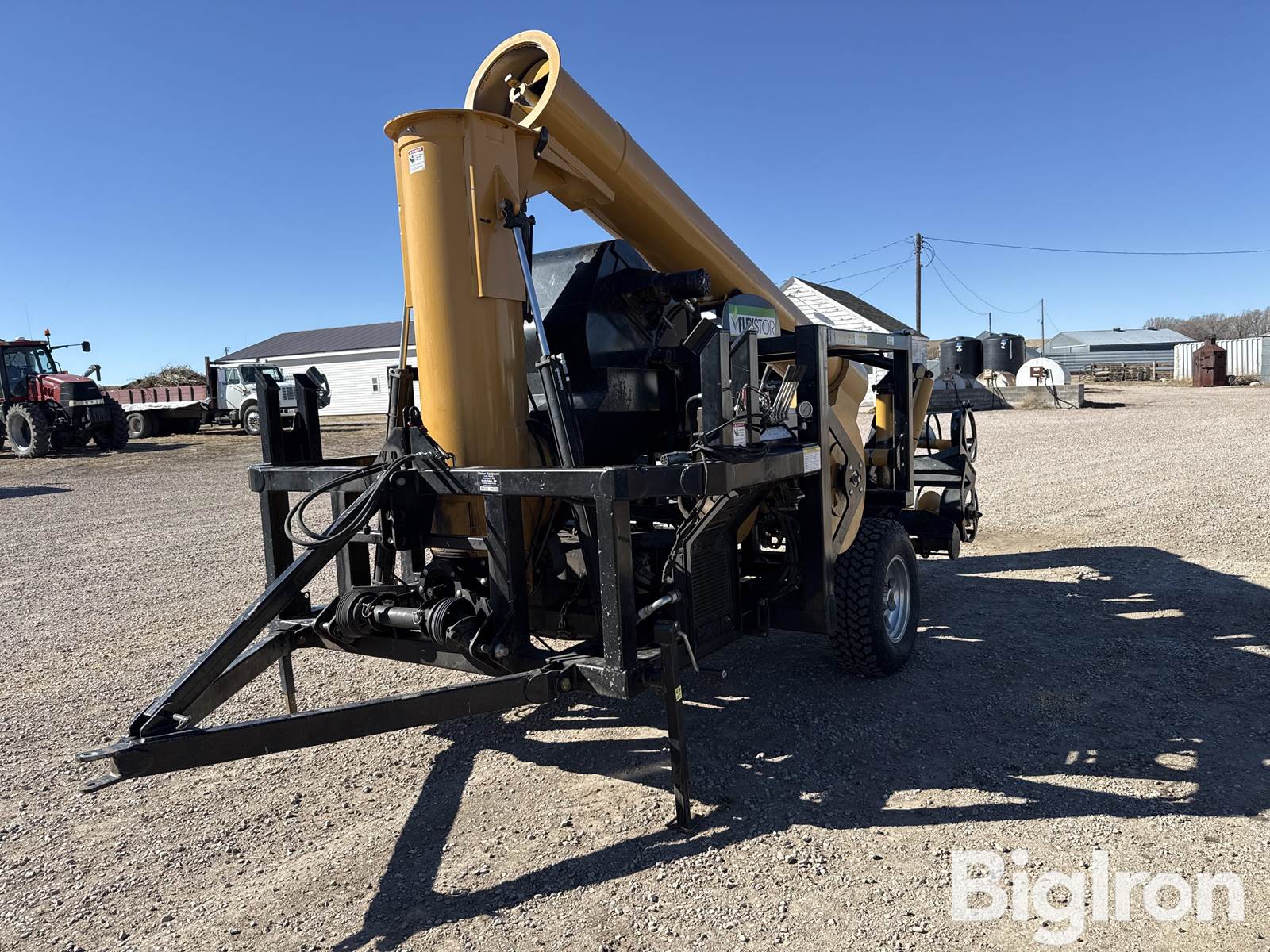 Koyker FLEXSTOR Grain Bag Unloader, 540 PTO, 1 Axles, Aluminum Wheels, Pin Hitch, Chain Conveyor, Steel Liner, 2,500# Max. Operating Press, 10’ Bag, 400’ one time used bag storage capacity, dual bag splitting knives, 265/75R16 Tires on Aluminum Rims with Lock Out Hubs, Hydraulic Ground Driven, Air Cooled Hydraulic Control Center, 540 PTO driven Hydraulic System, 16" unloading auger with dual auger fed Chain Driven paddle conveyor, Pin Transport Hitch, 3-Pt Hitch operating mount, SN: GBU 141581