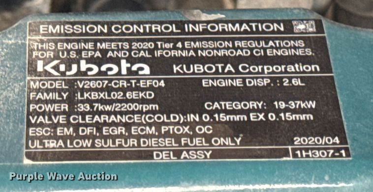 2020 Bobcat E32I mini excavator, Hours: 280 on meter, Serial: B3Y114545, Engine, Kubota D1703, Cylinders: 3, Fuel type: Diesel,...