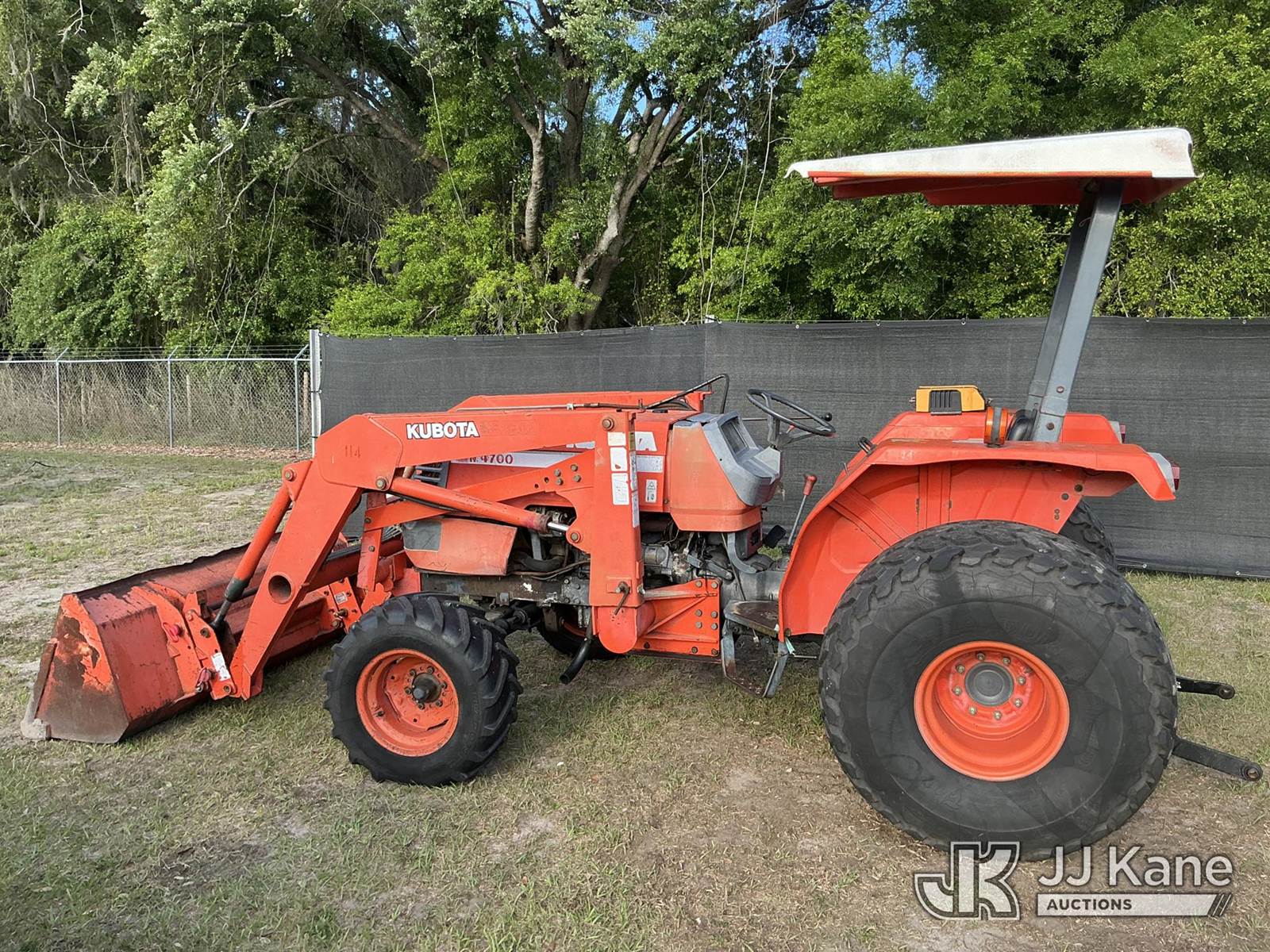 Kubota M4700 Utility Tractor Loader, diesel, 4-spd, with ROPS posts w/ canopy, (Runs, Moves, Operates) (Missing Serial Plate) (Reads 1,653 hours) NOTE: This unit is being sold AS IS/WHERE IS via Timed Auction and is located in Thonotosassa, FL. Inspection & preview days for this unit are the 2 business days prior to the first day of items closing for this auction, item is located at 11720 N US 301 Thonotosassa, Fl 33592 and hours of operations are 8a-4p. For pre-sale questions, please contact Office Staff @ (813) 986-2485. (Buyer is responsible for removal. Assistance by consignor or JJ Kane Auctions is not assured.)