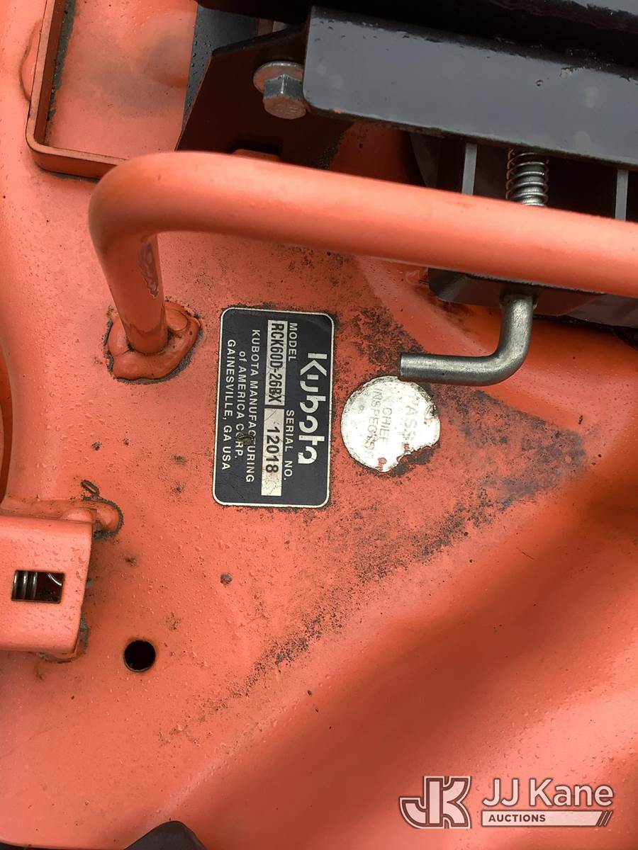 Kubota Mowing Deck RCK60D-26BX s/n 12018, (No Damage, Operating Conditions Unknown) (Removal is by Appointment Only, Buyer MUST make a appointment prior to picking up, Buyer/Transporter Must have PAID IN FULL RELEASE. No onsite assistance available, Please Come prepared.) NOTE: This unit is being sold AS IS/WHERE IS via Timed Auction and is located in Harmans, MD. Inspection & preview days for this unit are by appointment only; please contact us at contact@jjkane.com or 84-Go-JJKane for more details. For pre-sale questions, please contact the on-site office @ (443) 557-0025 or Kevin.Waggoner@JJKane.com. (Buyer is responsible for removal. Assistance by consignor or JJ Kane Auctions is not assured.)