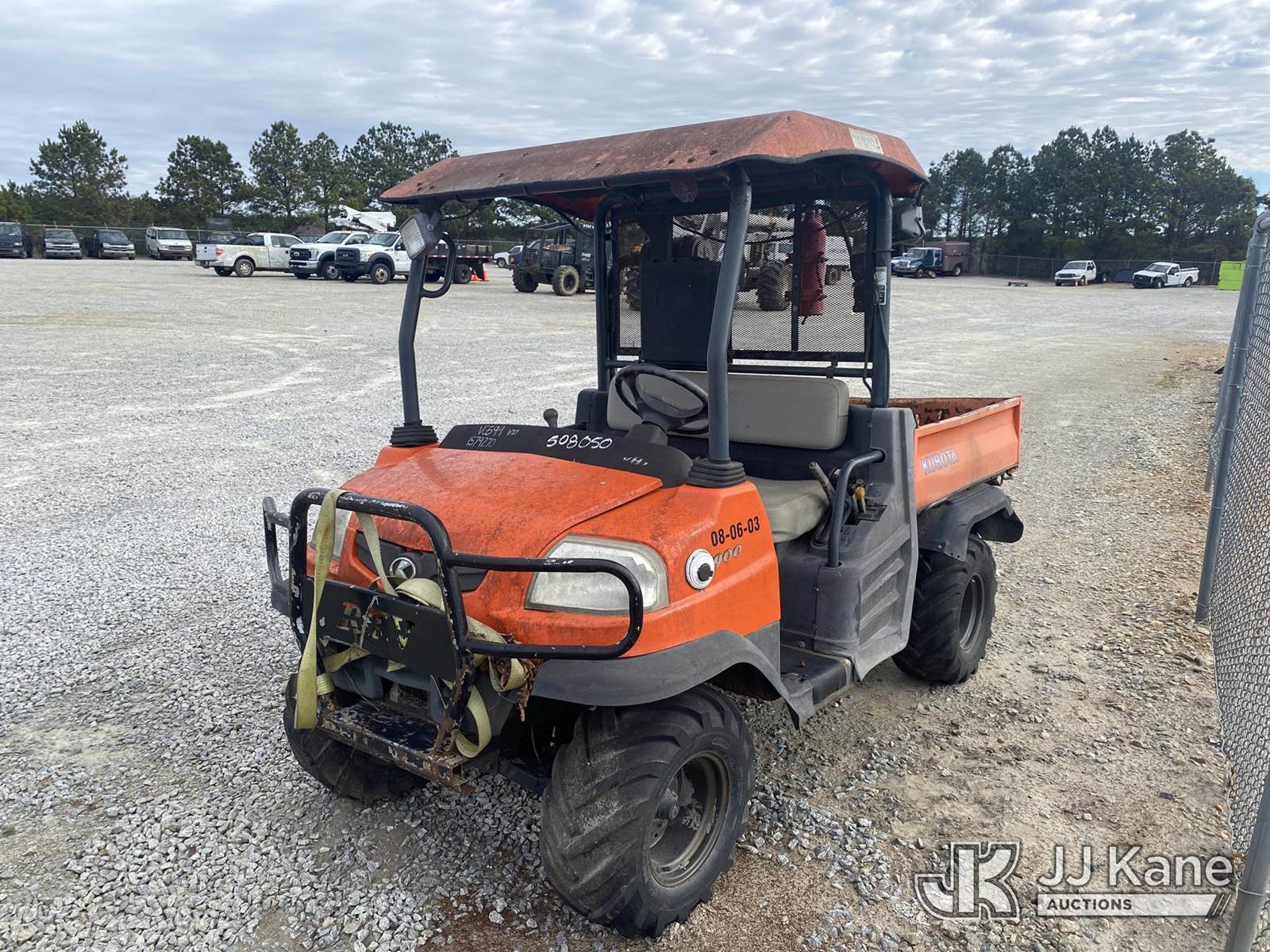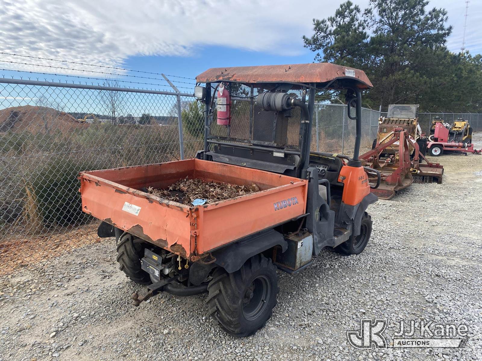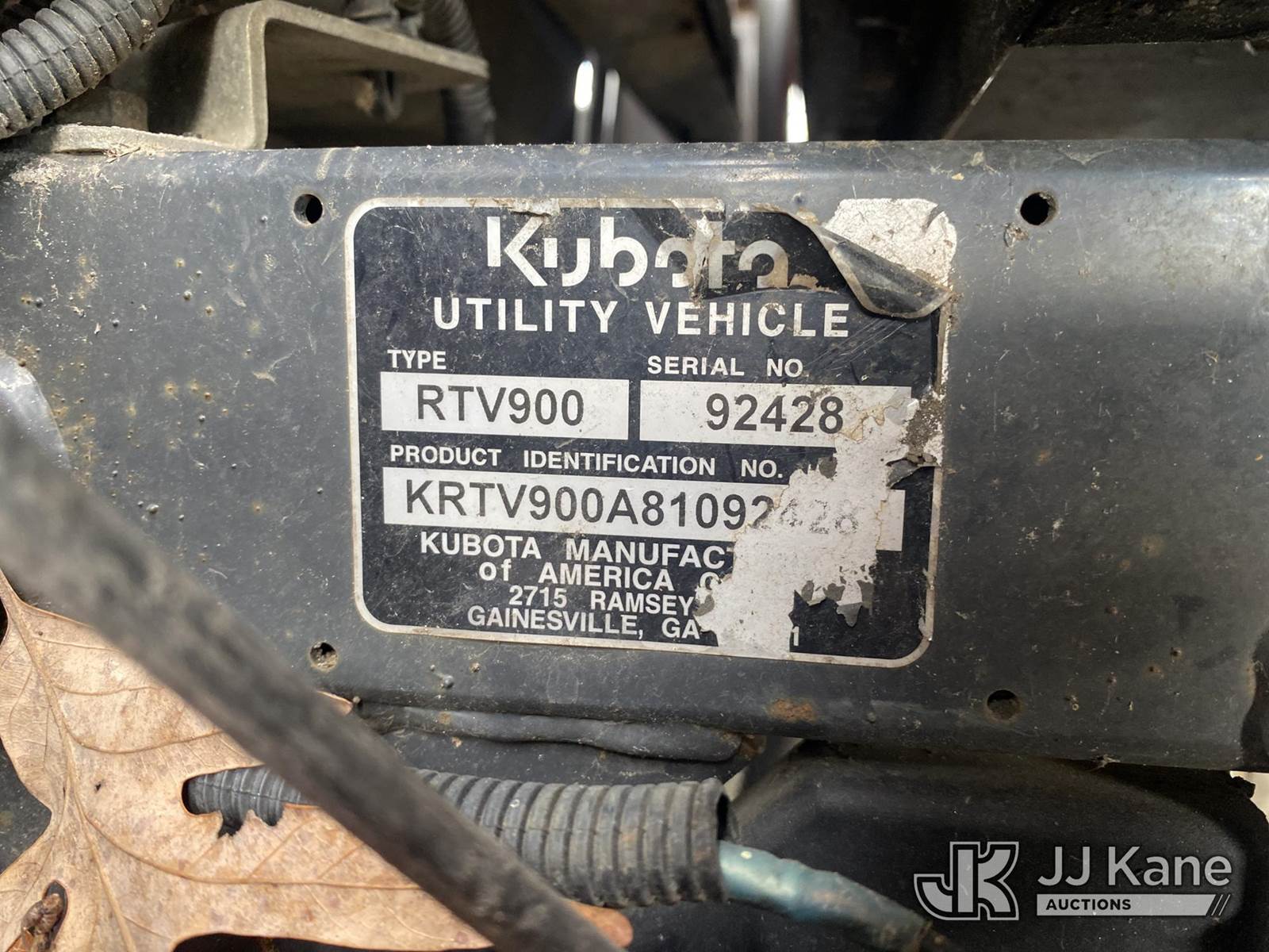 Kubota RTV-900 4x4 Yard Cart, s/n KRT900A81092428, Kubota Auto, diesel, (Not Running, Condition Unknown, No Key, Body/ Paint Damage, Rust Damage, Flat Tire) (Reads 832 hours) NOTE: This unit is being sold AS IS/WHERE IS via Timed Auction and is located in Villa Rica, GA. Inspection & preview days for this unit are the 2 business days prior to the first day of items closing for this auction, item is located at 100 Liberty Rd Villa Rica, GA 30180 and hours of operations are 8a-4p. For pre-sale questions, please contact Office Staff @ (470) 590-8453. (Buyer is responsible for removal. Assistance by consignor or JJ Kane Auctions is not assured.)