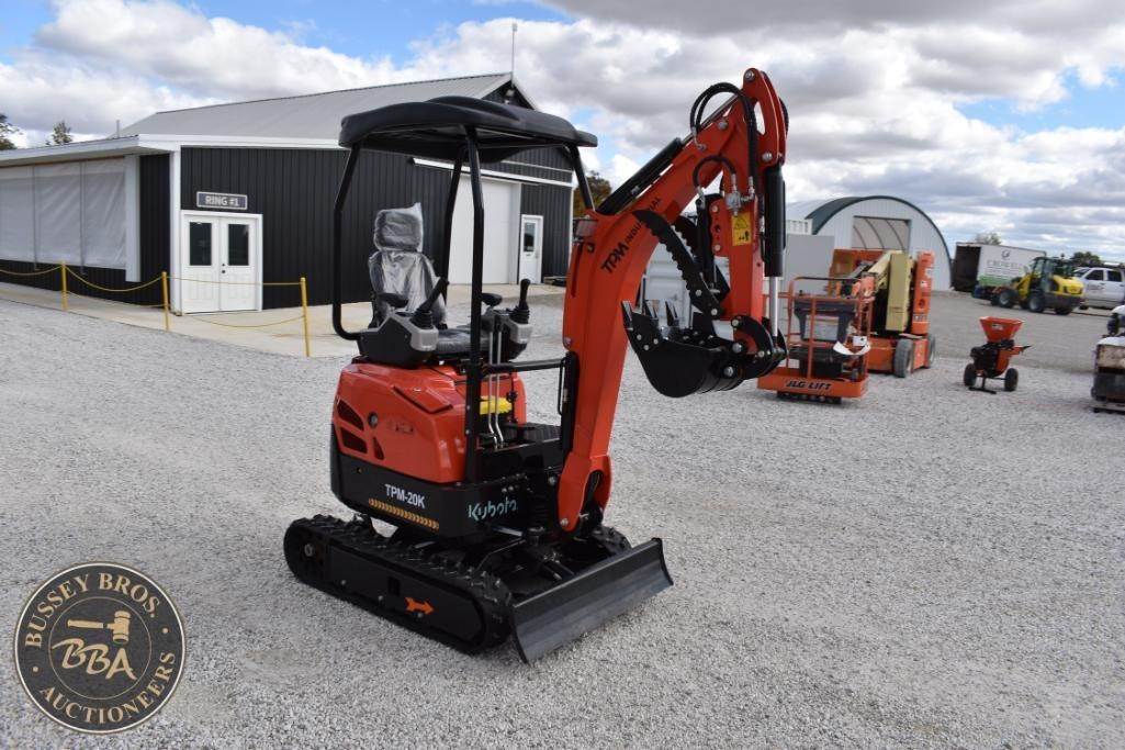 Kubota TPM-20K Mini Excavator, Kubota diesel engine open canopy, rubber tracks, grading blade, hydraulic thumb NEW/UNUSED