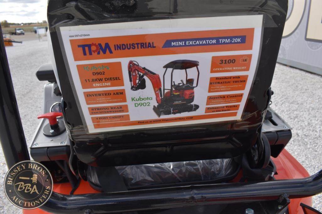 TPM Industrial TPM-20K Mini Excavator, Diesel engine rubber tracks, OROPS, hydraulic thumb, grading blade, work lights, NEW/UNUSED,
