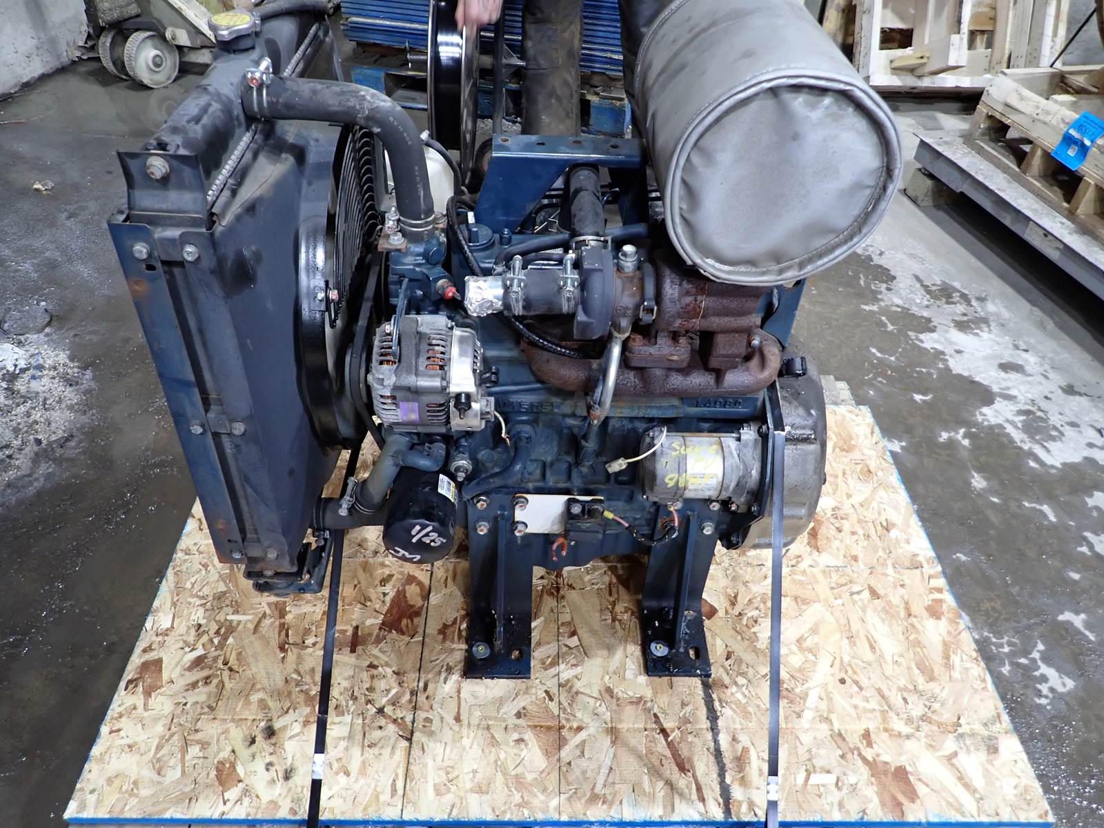 Kubota V1505-TE diesel engine, turbocharged, mechanical fuel system, 44 HP rating, complete power unit w/ muffler, radiator, mounts, accessories & hydraulic pump mount provisions, removed from a railroad power unit w/ only 88 hours on meter -- EXCELLENT runner. SEE VIDEO -- RUNS LIKE NEW -- NO HOURS AT ALL ON THIS UNIT AND COMES FULLY DRESSED LIKE YOU SEE IT -- MECHANICAL DIESEL POWER THAT WILL RELIABLY RUN AND RUN FOR YOU !