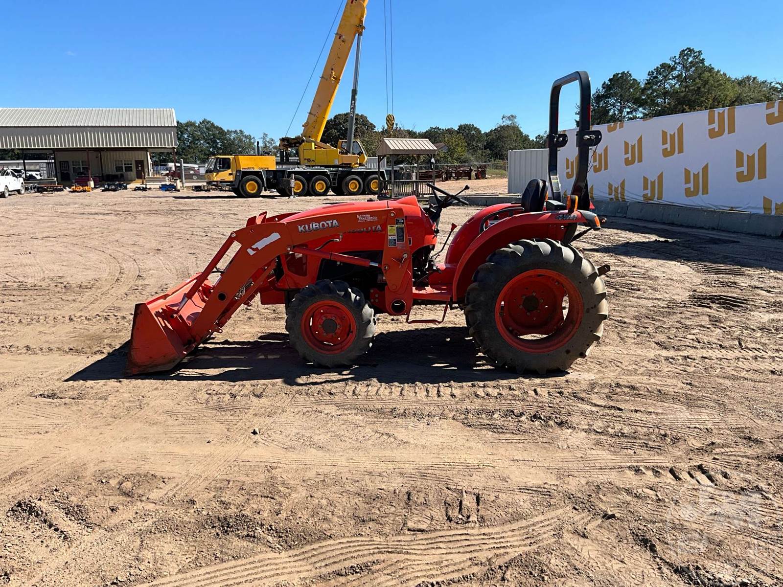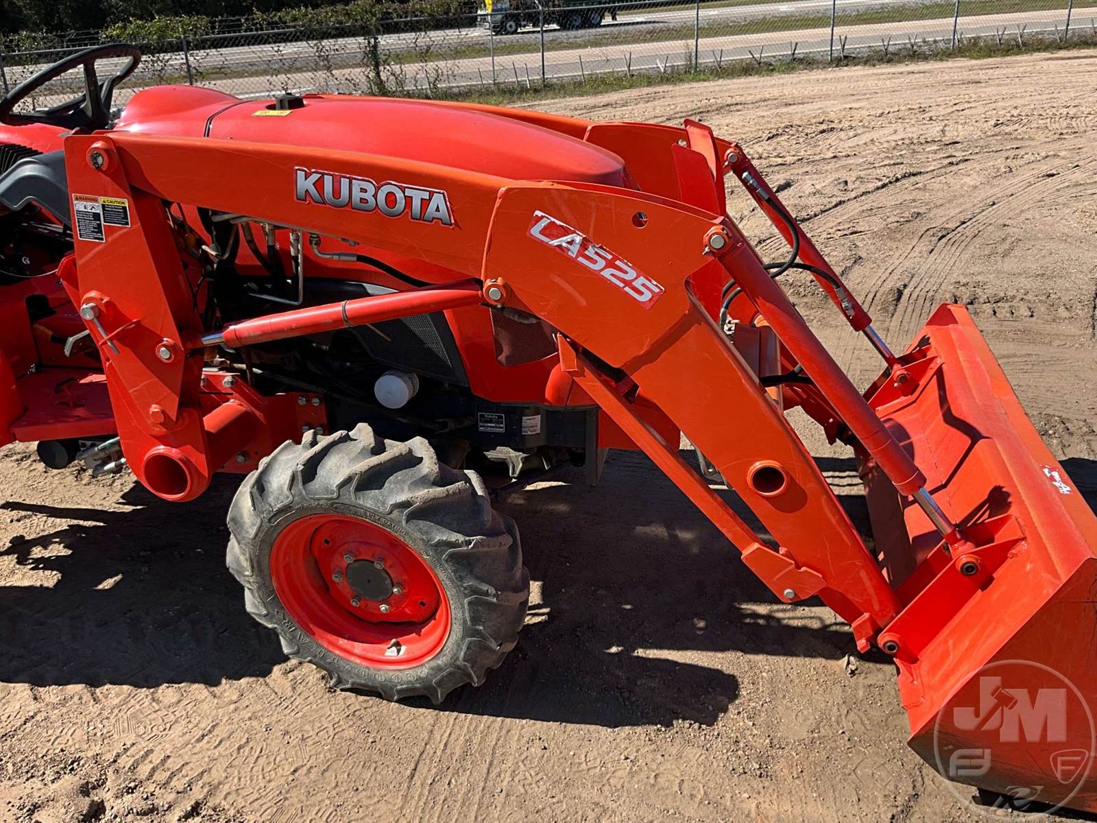 KUBOTA 4X4 TRACTOR W/ LOADER, 3 CYL, DIESEL ENGINE, 33 HP, 3 PT HITCH, DRAWBAR, SYNCRO TRANSMISSION, KUBOTA, LA525, LOADER, GP BKT, 540 RPM PTO, 11.2-24 REAR TIRES, 7.2-16 FRONT TIRES, HOUR METER READS: 286