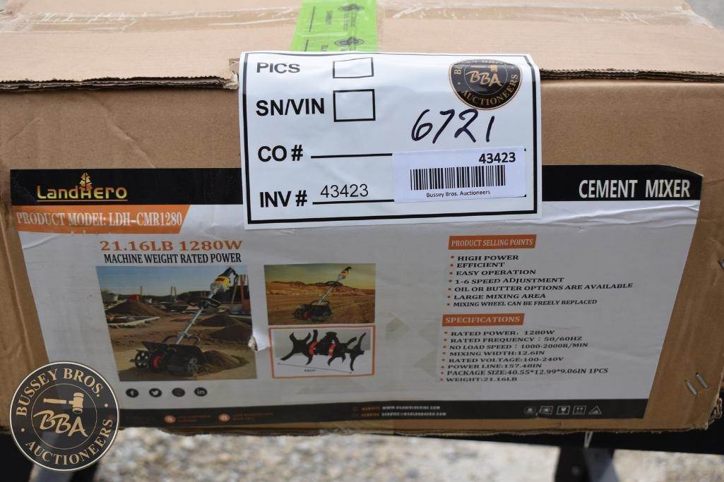 LandHero Cement Mixer Corded, electric, 1-6 speed adj, large mixing area, mixing wheel can be freely replaced, NEW/UNUSED