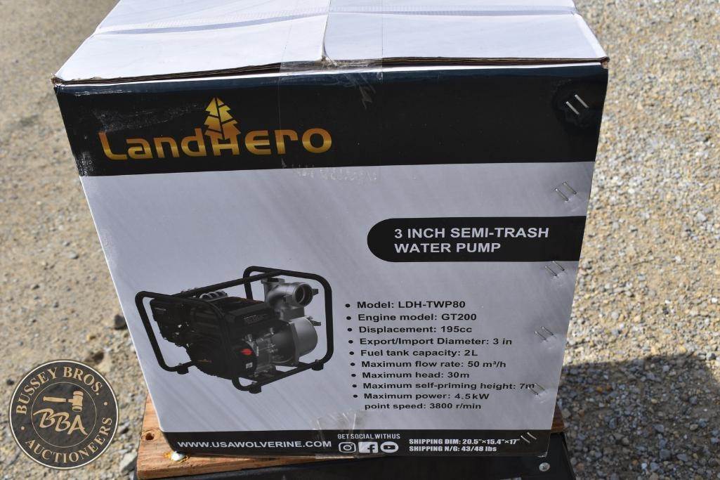 LandHero Gasoline Water Pump 3in semi-trash water pump, GT200, 195cc gas engine, max flow 50 cu me/hr, LDH-TWP80, NEW/UNUSED