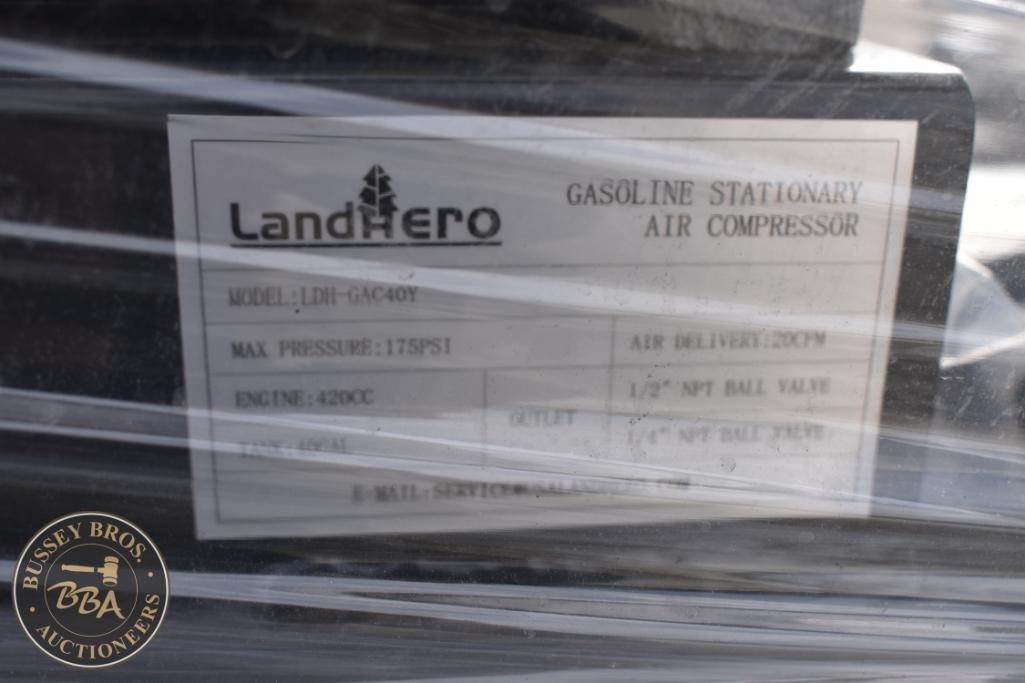 LandHero LDH-GAC40Y, 2-Stage Air Compressor, 15 HP, 40 Gallons, 175 PSI, 4-Stroke OHV Engine, 420 CC, Gas Power Source, Approx. Dimensions:...