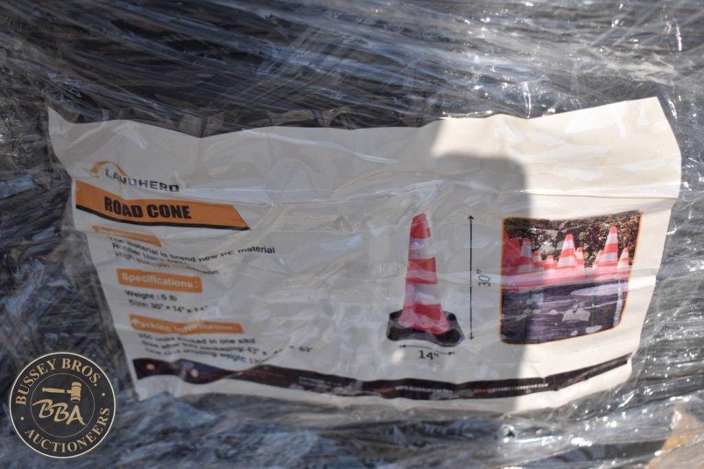 LandHero 30" Traffic Cone, PE Material, Base 14", Weight 5 lbs, Color Orange with White Reflective Bands, High-intensity reflective band. Lot contains 28 Cones