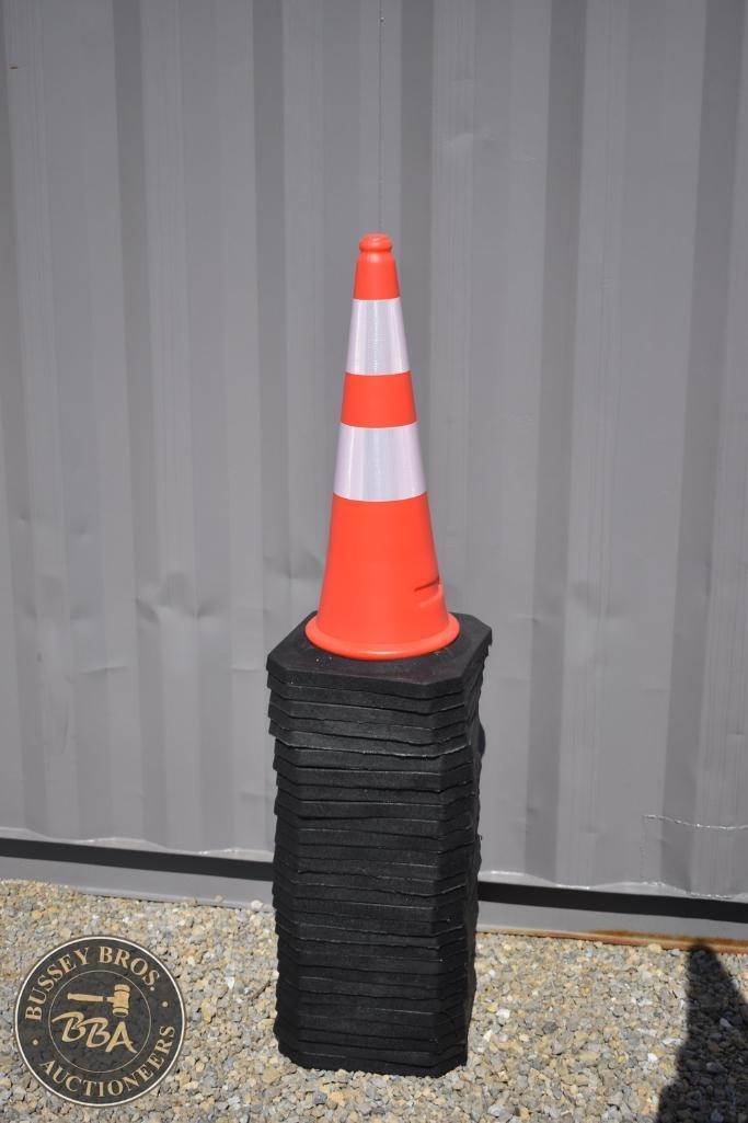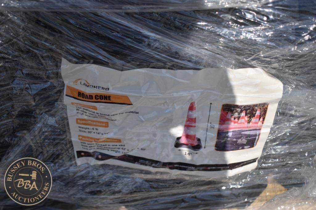 LandHero 30" Traffic Cone, PE Material, Base 14", Weight 5 lbs, Color Orange with White Reflective Bands, High-intensity reflective band. Lot contains 28 Cones