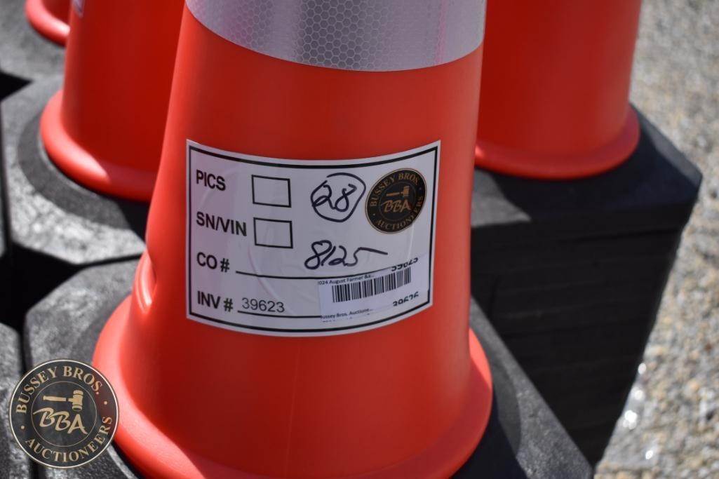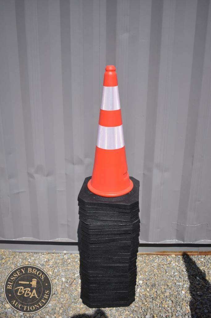 LandHero 30" Traffic Cone, PE Material, Base 14", Weight 5 lbs, Color Orange with White Reflective Bands, High-intensity reflective band. Lot contains 28 Cones