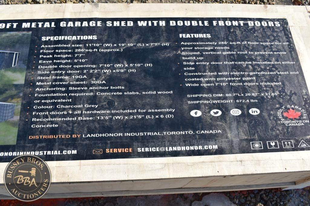 Landhonor 11X19FT Metal Garage 7FT7in. Peak height, 5ft.10in. Eave height, charcoal grey, NEW/UNUSED
