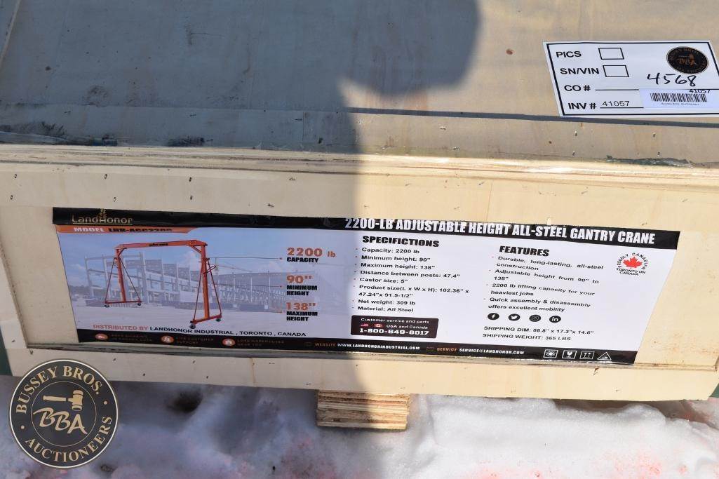 Landhonor Adjustable Gantry Crane 2200 lb capacity, castor wheels, NEW/UNUSED