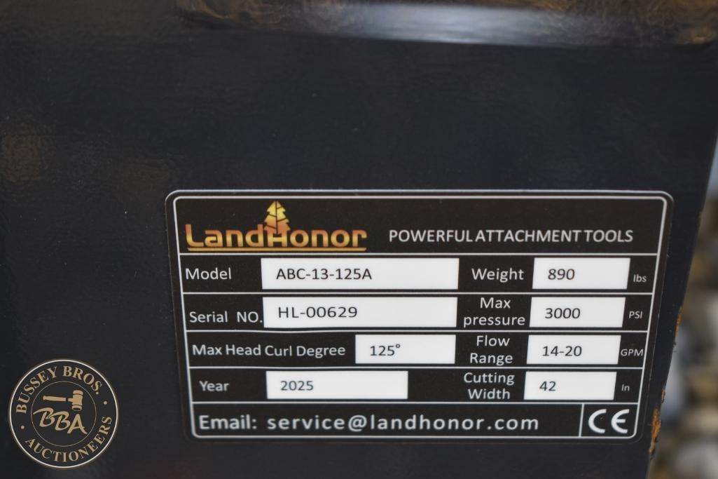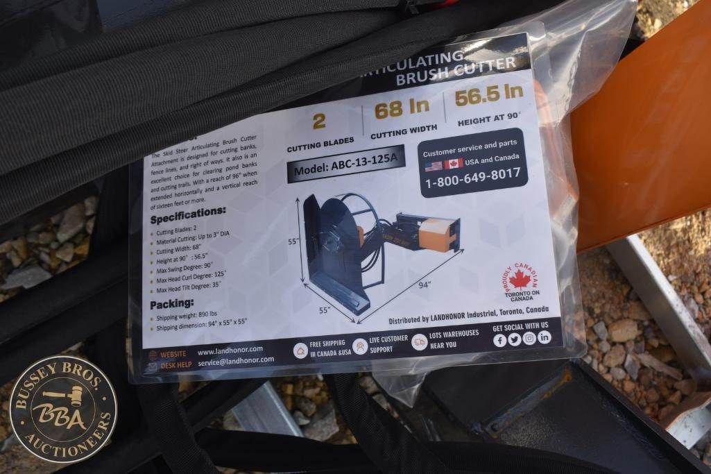 Landhonor Articulating Boom Mower Attachment skid steer mount, hydraulic powered, articulating boom, 68in cutting width, 2 cutting blades SN:HL00629, NEW/UNUSED