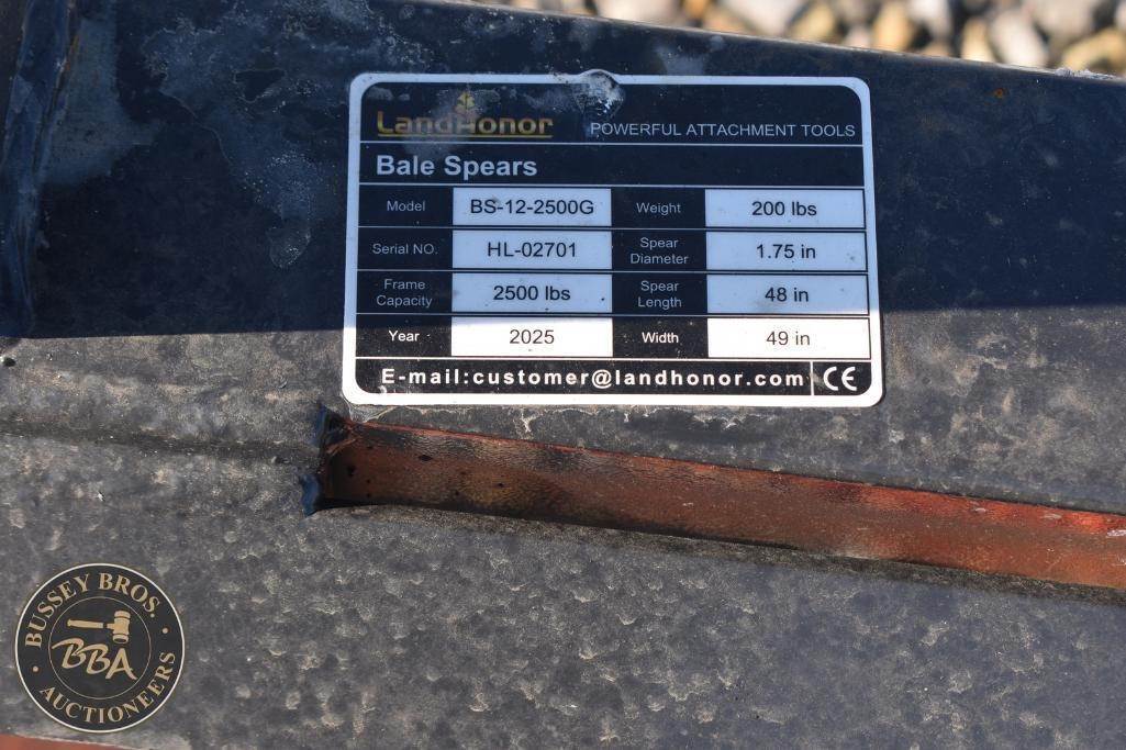 Landhonor Bale Spear Attachment Skid steer mount, double prong SN#HL02701, NEW/UNUSED