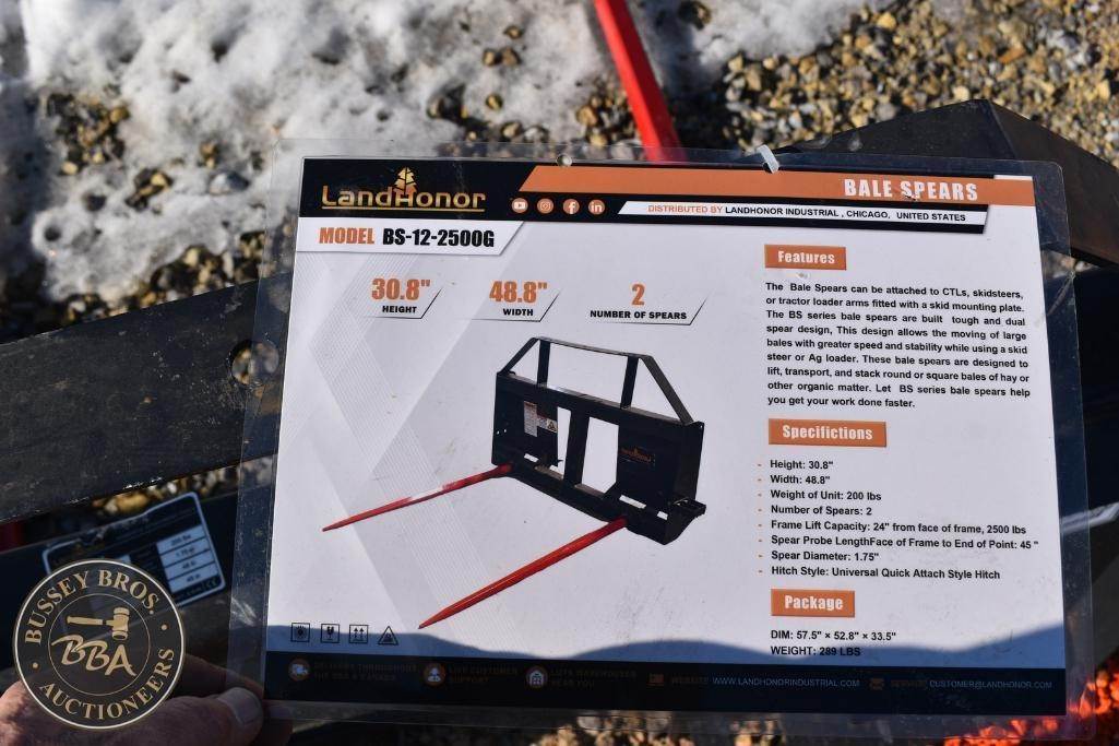Landhonor Bale Spear Attachment Skid steer mount, double prong, NEW/UNUSED,